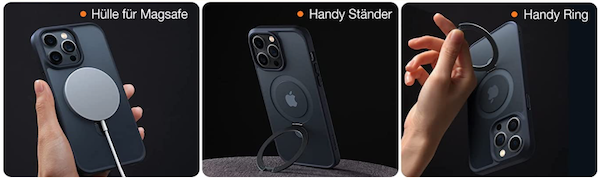 Auch für ein Erinnerungsfoto ist das Case super geeignet. Der ringförmige, am Ostand angebrachte Telefonständer, lässt sich hervorragend als Popsocket nutzen. Damit hast du dein iPhone immer bestens im Griff. Ein starker Neodym-Magnet sorgt zudem dafür, dass dein iPhone im Case Halt hat. Kein Verrutschen, kein Herausfallen – dafür ein deutlich schnelleres Laden.