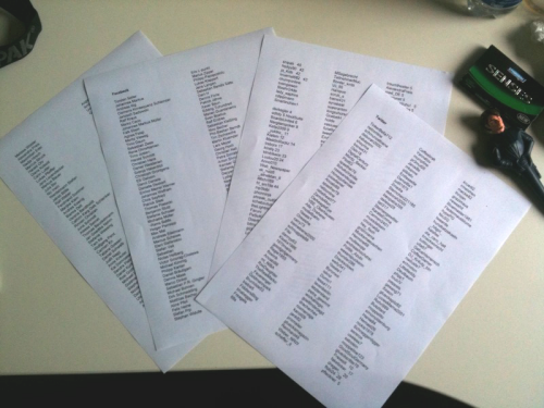 Alle 458 Facebook- und Twitter-Namen haben Marek und ich ausgedruckt und gemeinsam mit Kollege Hayo mit Bastelscheren (!) ausgeschnitten…