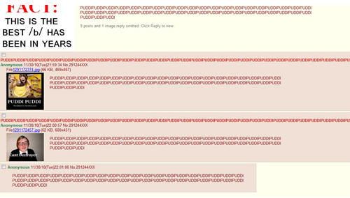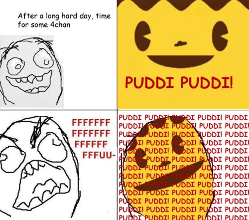 So lässt sich ein Meme natürlich auch zum Leben erwecken. Christopher Poole hat sich im /b/-Forum der von ihm gegründeten Plattform 4chan einen Spaß mit seinen Usern erlaubt. Er postete dort ein Video, schaltete es auf Autoplay und manipulierte derart die Kommentarfunktion, dass anstelle des User-Feedbacks nur eine endlose Anreihung des Ausdrucks „PUDDI PUDDI“ erschien.