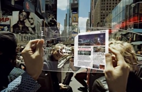 Samsung hat in einem neuen Konzeptvideo ein Tablet gezeigt, das nur aus einem flexiblen Amoled-Display besteht. Ein Nutzer geht, mit dieser intelligenten Folie bewaffnet, durch die Stadt, knippst Leute, nutzt Schrifterkennung, lässt sich Französisch auf Koreanisch übersetzen und freut sich über die 3D-Effekte des Geräts. Wenn, ja, wenn man das überhaupt noch als „Gerät“ bezeichnen kann. Zumindest im Video ist das nicht mehr als die Folie. Und so sehr ich solche Videos auch mag: dieses hier wirft deswegen ein paar Fragen auf.
