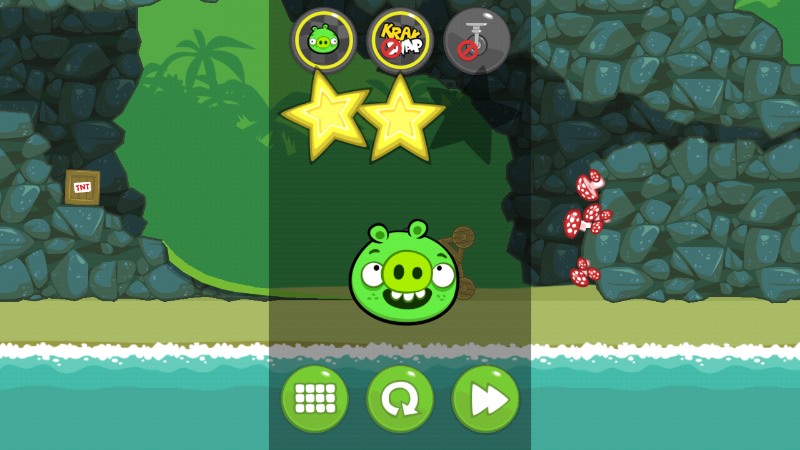 Dass die gleiche bunte Fabelwelt als Hintergrund ebenso verwendet wird wie die aus Angry Birds bekannten Sternchen und Symbole, dürfte den Fans gefallen. Allerdings hat man sich auch hieran langsam satt gesehen. Ob die Bad Piggies also den großen Erfolg ihrer Vorgänger wiederholen können? Ich bin da etwas skeptisch und recke trotzdem den Daumen nach oben: Das Spiel sieht nach solider Arbeit aus.