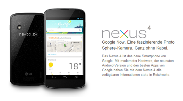 Wieso wird das Nexus 4 also ein Renner? Nun. Das liegt vor allem am Preis. Für 349 EUR ist das Gerät mit 16 GB Speicher im Google Play Store gelistet. Die Version mit 8 GB liegt bei 299 EUR. Beide Versionen sind als „bald verfügbar“ klassifiziert. Der offizielle Google-Blog kündigt den Launch auch in Deutschland für den 13. November 2012, also in zwei Wochen, an.