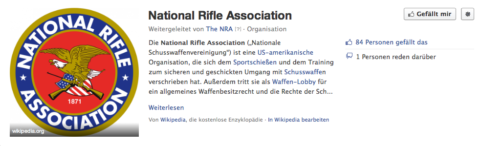 Nach dem verheerenden Massaker von vergangenem Freitag, bei dem an einer Grundschule in Newtown 27 Menschen, darunter 20 Kinder, ums Leben gekommen sind, fühlen sich offenbar auch die Vertreter der Nationalen Schusswaffenvereinigung (NRA) nicht mehr ganz so wohl in ihrer Haut. Zumindest hat der umstrittene Lobby-Verband vorsorglich seine Facebook-Präsenz vom Netz und – man muss es so sagen – aus der Schusslinie genommen. Seit Freitagabend, rund zehn Stunden nach dem Massaker, werden Nutzer auf die Facebook-Startseite umgeleitet, wenn sie die NRA-Seite bei Facebook aufrufen wollen. Die NRA tritt in den USA für ein allgemeines Waffenbesitzrecht ein und vereint nach eigenen Angaben rund 4,2 Millionen Mitglieder.