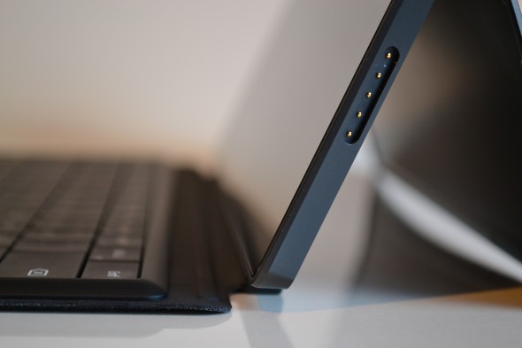 Der eigentliche Clou ist die Möglichkeit, eine Tastatur, die auch gleichzeitig als Displayschutz dient, anzuschließen. Positiv aufgefallen ist uns aber auch der integrierte Standfuß auf der Rückseite. Mit diesen einfachen Kniffen sind so auch längere Schreibarbeiten problemlos möglich. Besonders gelungen ist zudem der magnetische Anschluss, der Tablet und Tastatur miteinander verbindet. Innerhalb kürzester Zeit und äußerst bequem lassen sich so beide Komponenten sicher koppeln. Dass dies nicht selbstverständlich ist, konnten wir bereits beim Asus Transformer Prime feststellen, dort erfolgt der Anschluss wie gehabt über eine Steckverbindung. Fairerweise muss man aber noch erwähnen, dass die Tastatur des Transformer Prime über einen zusätzlichen Akku verfügt.
