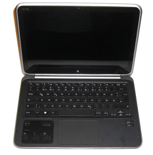 Dem Dell XPS 12 ist seine Beweglichkeit auf den ersten Blick kaum anzusehen. Das rund 317 x 215 Millimeter (mm) große Modell mit 12-Zoll-Bildschirm wirkt wie ein herkömmlicher Mobilrechner – bis man fest an den Bildschirm stupst. Der Touchscreen mit Full-HD-Auflösung ist nämlich innerhalb des Displayrahmens nach hinten drehbar, die berührungsempfindliche Oberfläche dann außen und der Display-Deckel innen. Zugeklappt ergibt sich also ein Tablet-PC. Wenn auch ein dicker und schwerer. 15 bis 20 mm dick und 1,52 Kilogramm schwer, um genau zu sein. Als Notebook sind das wiederum Traummaße.