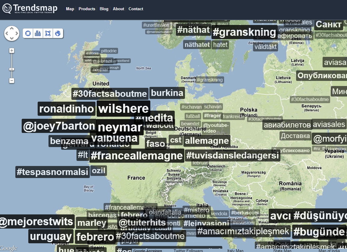 Für alle, die einen schnellen Überblick über die heißen Themen auf Twitter haben wollen, bieten sich daher etwa Trendtools an. Ganz praktisch hierfür sind beispielsweise What the Trend, Top Twitter Trends oder Deutsche Twittertrends. Ein weiterer Aspekt, der die Inhalte auf Twitter besonders interessant macht, ist die geographische Verknüpfung der Tweets – zumindest solange weiterhin zahlreiche Nutzer das Feature nicht deaktivieren. Twendr und Trendsmap bereiten auf einen Blick Top-Themen auf Twitter, sortiert nach einzelnen Ländern.