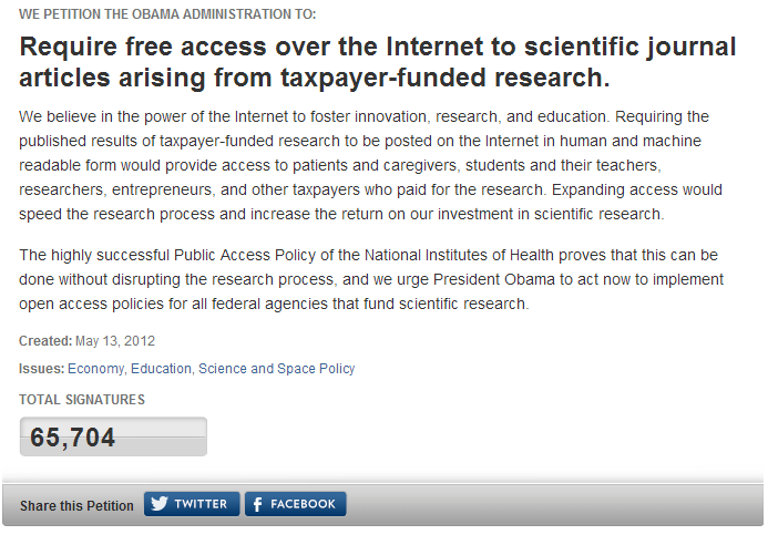 Auch auf der anderen Seite des Atlantiks hat sich die Politik offiziell dem freien Zugang verschrieben. Erst im letzten Jahr hatte eine vielbeachtete Petition mit über 65.000 Unterschriften die Aufmerksamkeit des Weißen Hauses erregt. In einem jüngst veröffentlichten Memorandum stellt die US-Regierung nun die Weichen für die weitere Open-Access-Strategie. Darin werden öffentliche Einrichtungen mit einem Forschungsbudget von über 100 Millionen US-Dollar aufgefordert, innerhalb von sechs Monaten einen Plan für verbesserten öffentlichen Zugang zu entwickeln. Eine Summe, mit der neben Vertretern aus der Wissenschaft offenbar auch die Verlage im Großen und Ganzen einverstanden sind.
