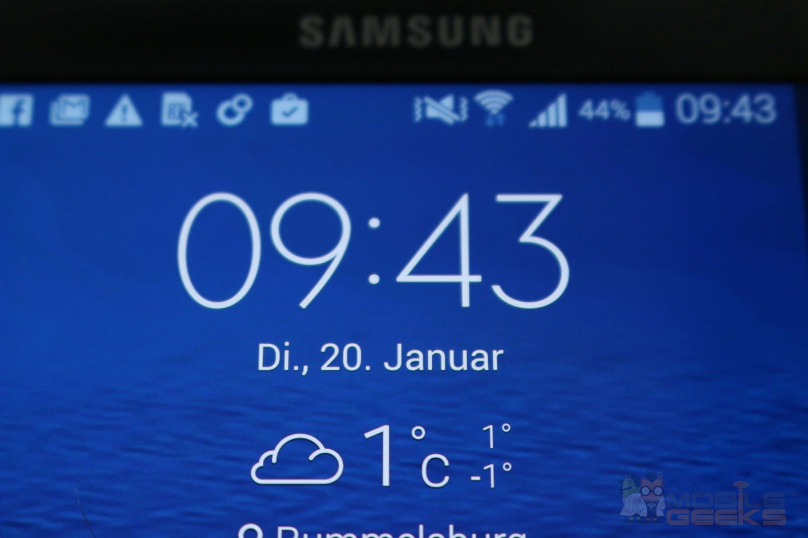 Im normalen Betrieb und in Innenräumen wurde bei meinen Versuchen mit zugegebenermaßen mangelhafter Messtechnik maximal ein Wert von knapp 420 Candela erreicht, was immer noch mehr als ordentlich ist. Tatsächlich wirkt das Panel wegen seiner enormen Leuchtkraft und des hohen Kontrastes sogar oft etwas zu hell, so dass ich grundsätzlich die schöne Option nutzte, die Automatik leicht zurückzuregeln – dem im Notification-Center untergebrachten Schieberegler sei dank. Gerade nachts ist dieser Regler sehr praktisch, denn anders als die meisten anderen Smartphone-Displays kann man Samsungs AMOLED-Panels damit auf Wunsch extrem weit herunter regeln, so dass sie die Augen nicht belasten, wenn man vor dem Schlafen nochmal schnell E-Mails abrufen will.
