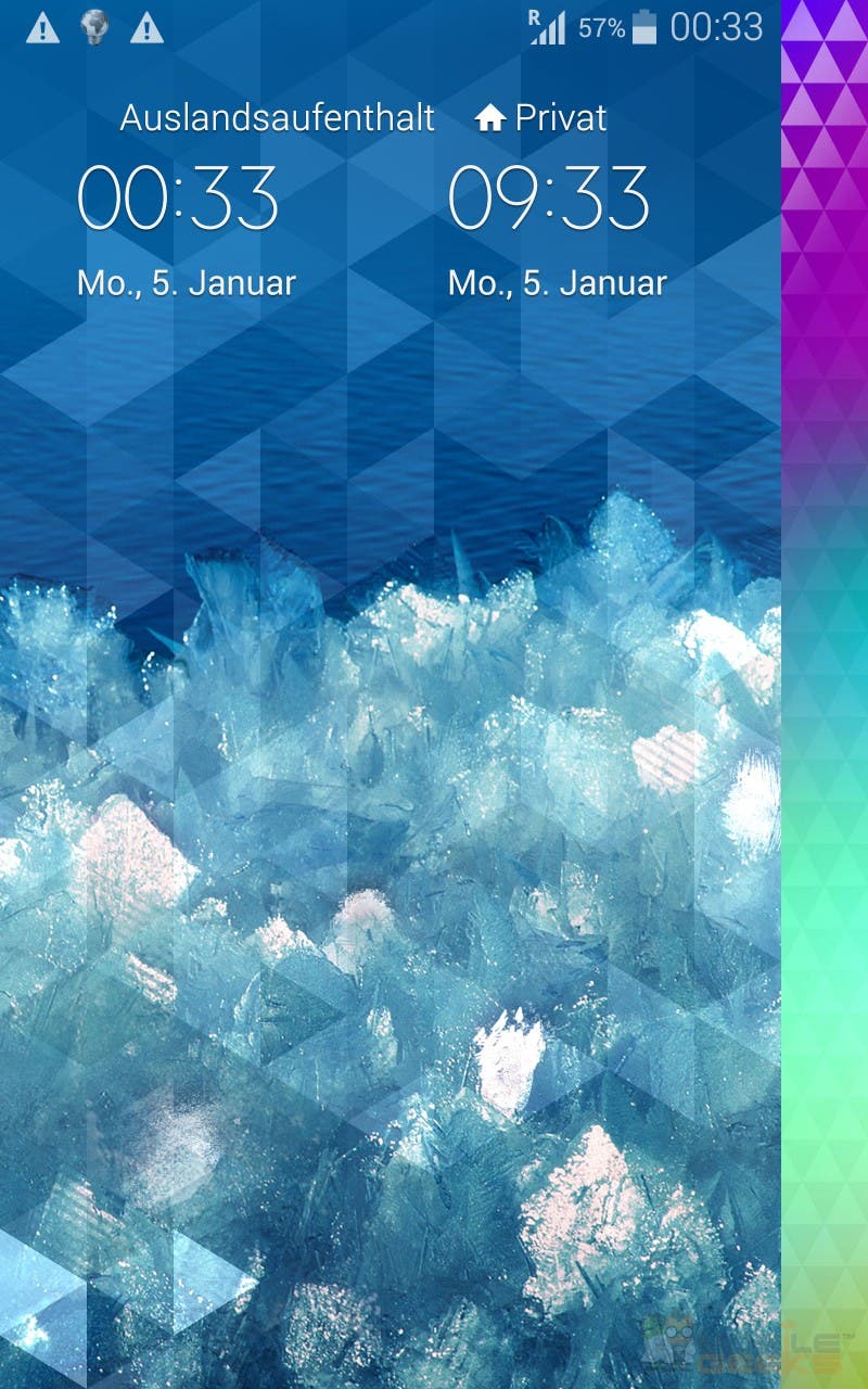 In den meisten Apps wird der gewölbte Streifen kaum genutzt, so dass dort meist nur ein Platzhalter angezeigt wird und die Touch-Empfindlichkeit aus den weiter oben genannten Gründen deaktiviert wird. Bei Bedarf können weitere Werkzeugleisten heruntergeladen und der Funktionsumfang so erweitert werden. Wer will kann außerdem seinen eigenen Text und ein eigenes Bild anzeigen lassen, wenn das Telefon den Lockscreen anzeigt. Wirklich großen Nutzen konnte ich bisher kaum feststellen, wobei zumindest die Möglichkeit zur Anzeige von Uhrzeit und auflaufenden Nachrichten im Nachtmodus bei sonst deaktiviertem Display attraktiv ist. Legt man das Gerät richtig auf den Nachttisch, kann man so einen kurzen Blick auf Uhrzeit oder Nachrichten werfen, ohne das Gerät in die Hand nehmen zu müssen.