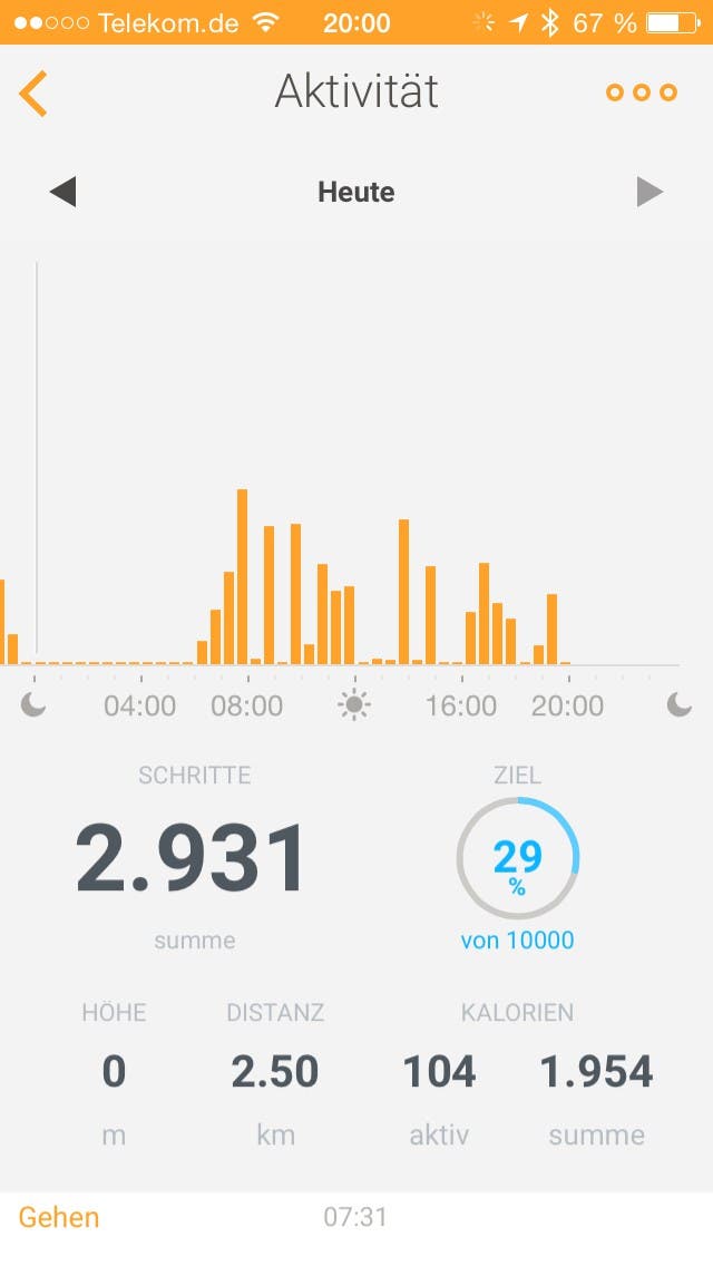 Dieser Tag war etwas aktiver, da ich an diesem Tag einen Stadtbummel mit meiner Familie gemacht habe, daher kamen an diesem Tag auch mehr Schritte auf den Tracker.