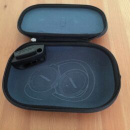 Typisch für Bose begeistert bereits beim Auspacken der Blick fürs Detail. Beispielsweise das Etui, das zusätzlich zu dem Einschub für eine Reservebatterie und dem Duplex-Klinkenstecker auch ein Außenfach für das Audiokabel beherbergt. Weiterhin ist im Boden des Etuis eine Skizze, die mir anzeigt wie ich den Kopfhörer einzulegen habe. Das klingt zwar nach Mumpitz, erspart mir aber kostbare Zeit und Frickelei beim Einlegen. Der Kopfhörer kommt bereits zusammengeklappt im Etui. Es ist unglaublich wie wenig Platz das Teil so benötigt. Da wird noch viel Raum für anderes im Köfferchen sein.