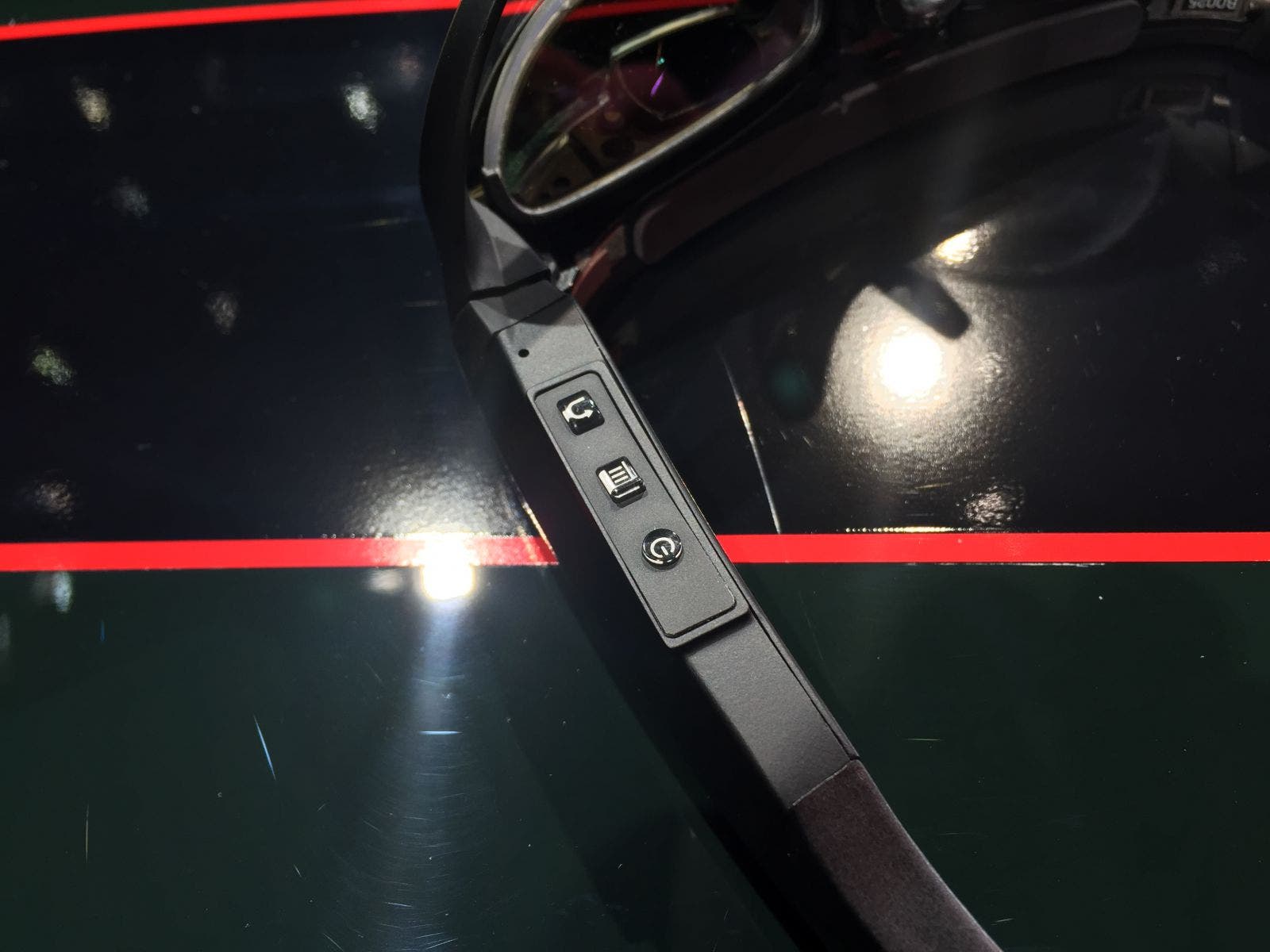 Wer sich schon einmal an der Google Glass einen Wolf „geswypt“ hat, der fragt sich natuerlich wie BMW dieses Problem vermeiden will, bzw. wie man die hauseigene smarte Brille denn ueberhaupt nutzbar macht. Nun, die Brille ist vor allen Dingen voellig autark von einem Smartphone zu nutzen. Die integrierte MINI App rennt darauf sowohl im, wie auch ausserhalb des Autos, wobei sie sich im Wagen mit MINI Connected verbindet und dann ueber das Lenkrad gesteuert werden kann. Ausserhalb des Fahrzeugs kann man die Brille mit einem an der oberen Seite des rechten Brillenbuegels angebrachten Touchpad und mit 3 Knoepfen bedienen.