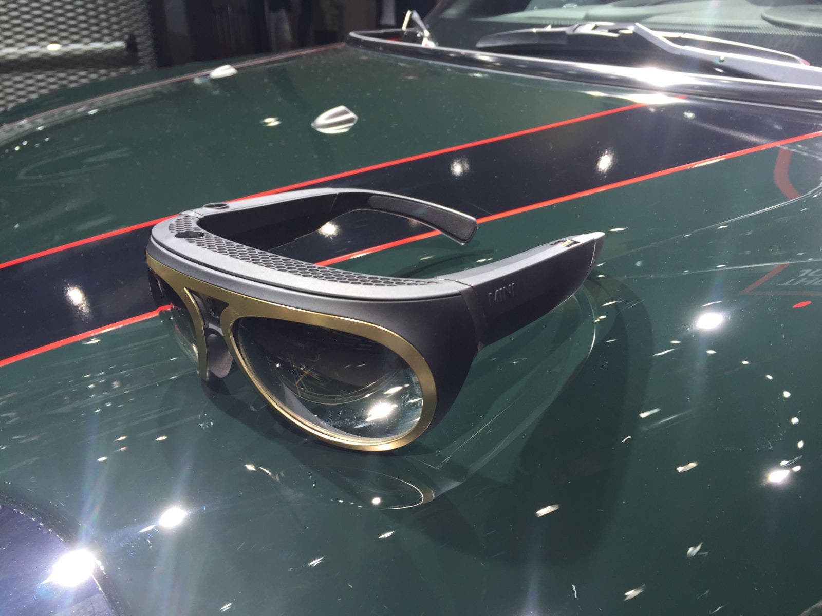 Mit Vorurteilen bin ich auf dem MINI-Stand aufgeschlagen, dachte ich doch dass diese, sagen wir mal recht aussergewoehnlich aussehende Brille, mein Sichtfeld stark einschraenken wuerde. Ja, hier kann man die Augmented Vision ganz klar noch verbessern, dennoch war ich positiv ueberrascht ob des Tragekomforts, der Handhabung und natuerlich des Blickfeldes.