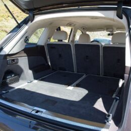 Und ja, ich lasse das Argument „Ich muss schwere Anhänger ziehen“ zu, denn in Verbindung mit der adaptiven Luftfederung darf man mit dem Q7 gebremste Anhänger bis zu einem Gesamtgewicht von 3.5 Tonnen ziehen. Wenn es auch kleinere Fahrzeuge wie den Ford S-Max gibt, ich würde zudem ein „Wir haben viele Kinder“ akzeptieren. Den Q7 gibt es als 5- und als 7-Sitzer. Und in der zweiten Sitzreihe passen tatsächlich drei Kindersitze nebeneinander – jeder Sitz ist mit Isofix-Halterungen ausgestattet. Das gilt auch für die beiden Extra-Sitze hinten in der dritten Reihe und den Beifahrersitz, so dass die klassische „Soccer-Mom“ den SUV mit ganzen 6 Isofix-Kindersitzen bestücken kann. Als Familienvater und ehemaliger Soccer-Dad finde ich das durchaus imposant. Vor allem, weil hinter der letzten Sitzreihe tatsächlich noch genug Platz für etwas Stauraum bleibt, was ja sonst bei den 7-Sitzern eher nicht so gegeben ist. Beim neuen Q7 hat man hinter der dritten Sitzreihe immerhin noch 295 Liter Stauvolumen. Ebenso hat es mich beeindruckt, dass ich mit meinen 180cm Körpergröße mit leichten Einschränkungen sogar in der dritten Sitzreihe Platz finde. Der neue Audi Q7 ist also ein großes Auto, was viel Platz bietet und schwere Anhänger ziehen kann.
