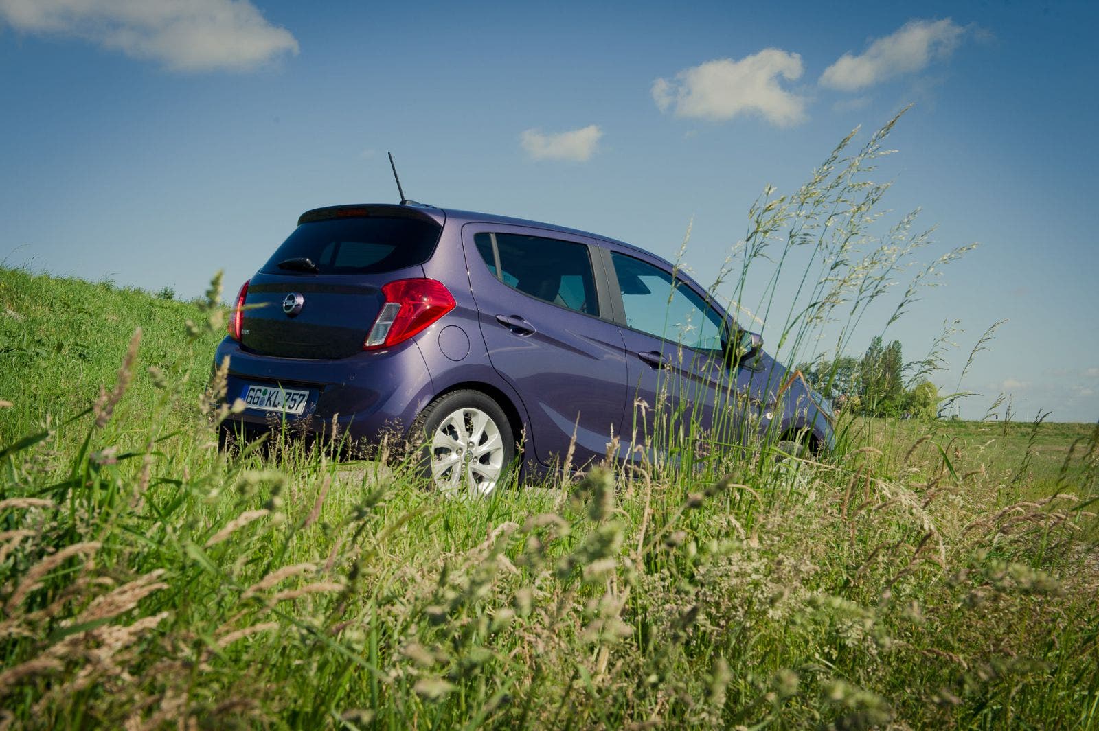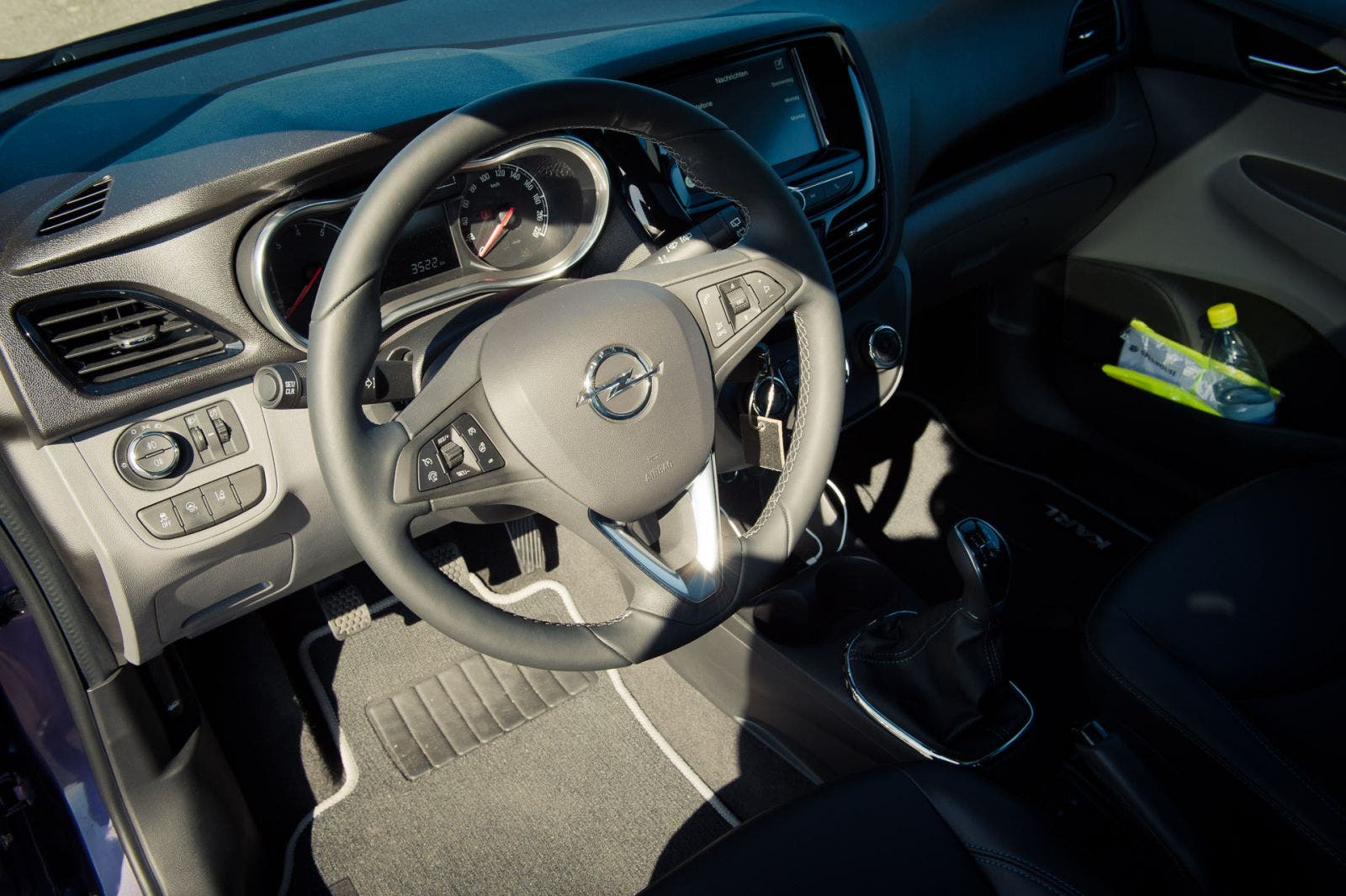 Dafür bekommt der Käufer ein kleines Auto (3.67 m lang bei einem Radstand von 2.38 m, 1.47 m hoch und 1.69m breit), was Platz für 4 Personen bietet, wenn diese nicht wesentlich größer als 180 cm sind und über einen Kofferraum verfügt, in dem man problemlos zwei Wasserkisten verstauen kann. Das 1 Liter ECOTEC 3-Zylinder Benziner-Motörchen hat sich bereits im Adam und Corsa bewährt, aus Kostengründen hat Opel auf eine Direkteinspritzung und Turboaufladung verzichtet, so dass die Leistung auf 75 PS beschränkt ist. Die reichen dann auch gerne mal für ein maximales Drehmoment von 95 Nm. Fahrspass, so möchte man denken, sieht anders aus. Stimmt aber nicht so ganz. Denn das manuelle 5-gang-Getriebe, was sich präzise schalten lässt, ist zumindest so übersetzt, dass man in der Stadt doch recht flott unterwegs sein kann. Wer viel Zeit mitbringt, kann vielleicht auch irgendwann die Höchstgeschwindigkeit von 170 km/h erreichen. Aber alleine das Beschleunigen von 0 auf 100 km/h dauert 13.9 Sekunden. Wer es hingegen ruhiger angehen lässt, soll den von Opel angegebenen NEFZ-Verbrauch von 4.3 Litern Super auf 100 Kilometern nahe kommen. Bei einem Tankinhalt von 32 Liter kann man also im Idealfall ganze 740 Kilometer weit kommen. Wer dem Karl die Sporen gibt, kann aber auch gut und gerne 7 Liter Sprit auf 100 Kilometern verfahren.