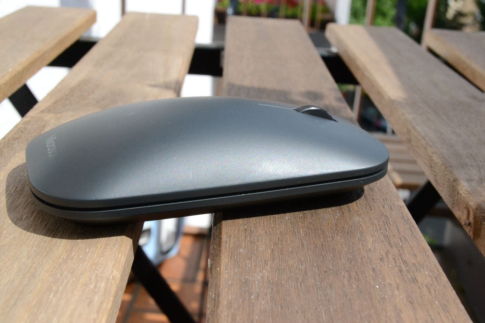 Auch die Maus wird übrigens von zwei AAA-Batterien angetrieben. Diese verbergen sich auf der Unterseite und sind, genau wie bei der Tastatur, durch eine magnetische Klappe verdeckt.
