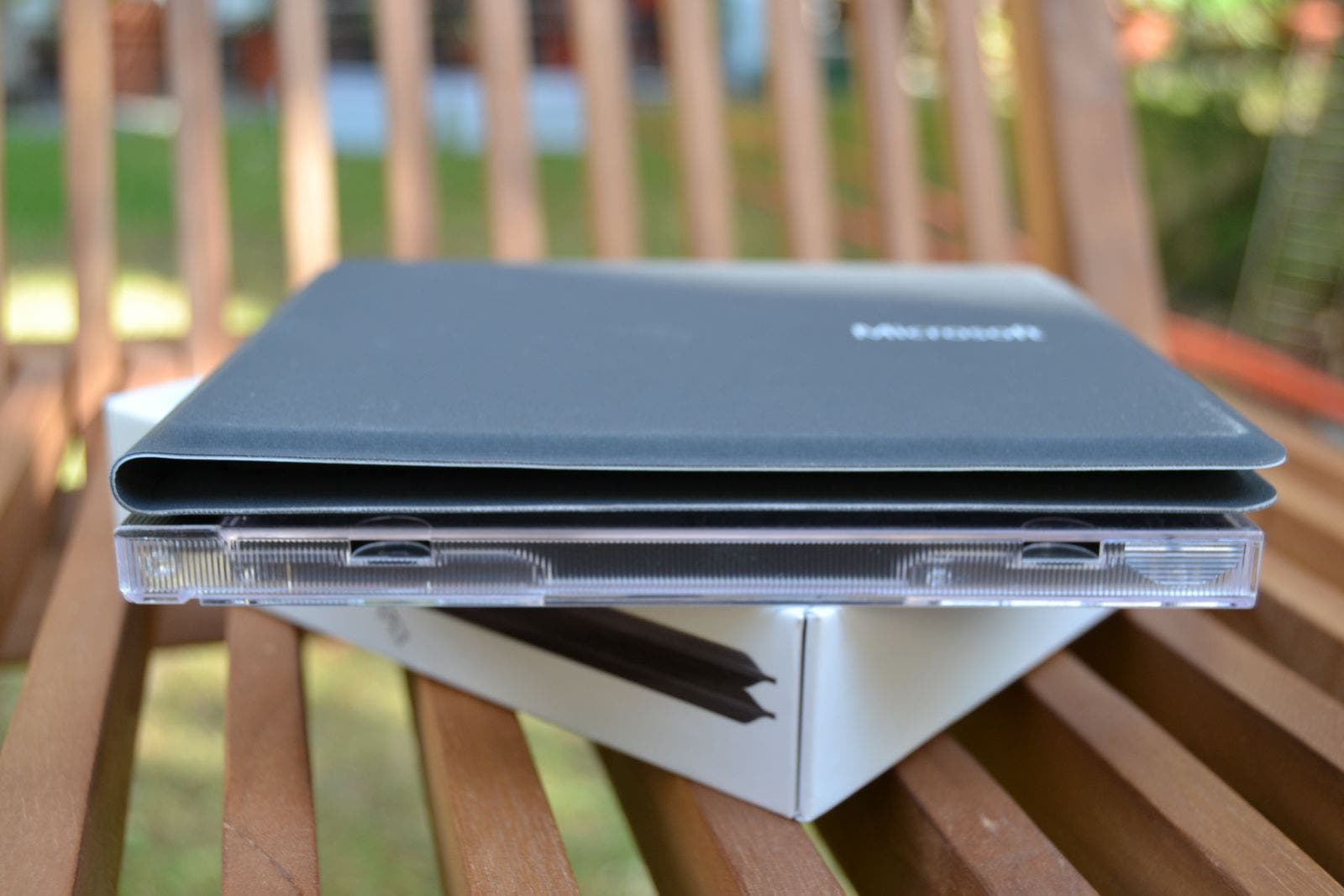 Wie bereits angesprochen sieht das Universal Foldable Keyboard dem Surface Type Cover sehr ähnlich. Jeder Surface Besitzer, der ein Type-Cover verwendet, sollte sich sofort wie zu Hause fühlen. Der Tastenhub ist sehr gering, aber das stört nach einer kurzen Eingewöhnung nicht wirklich. Es lässt sich gut auf der Tastatur tippen.