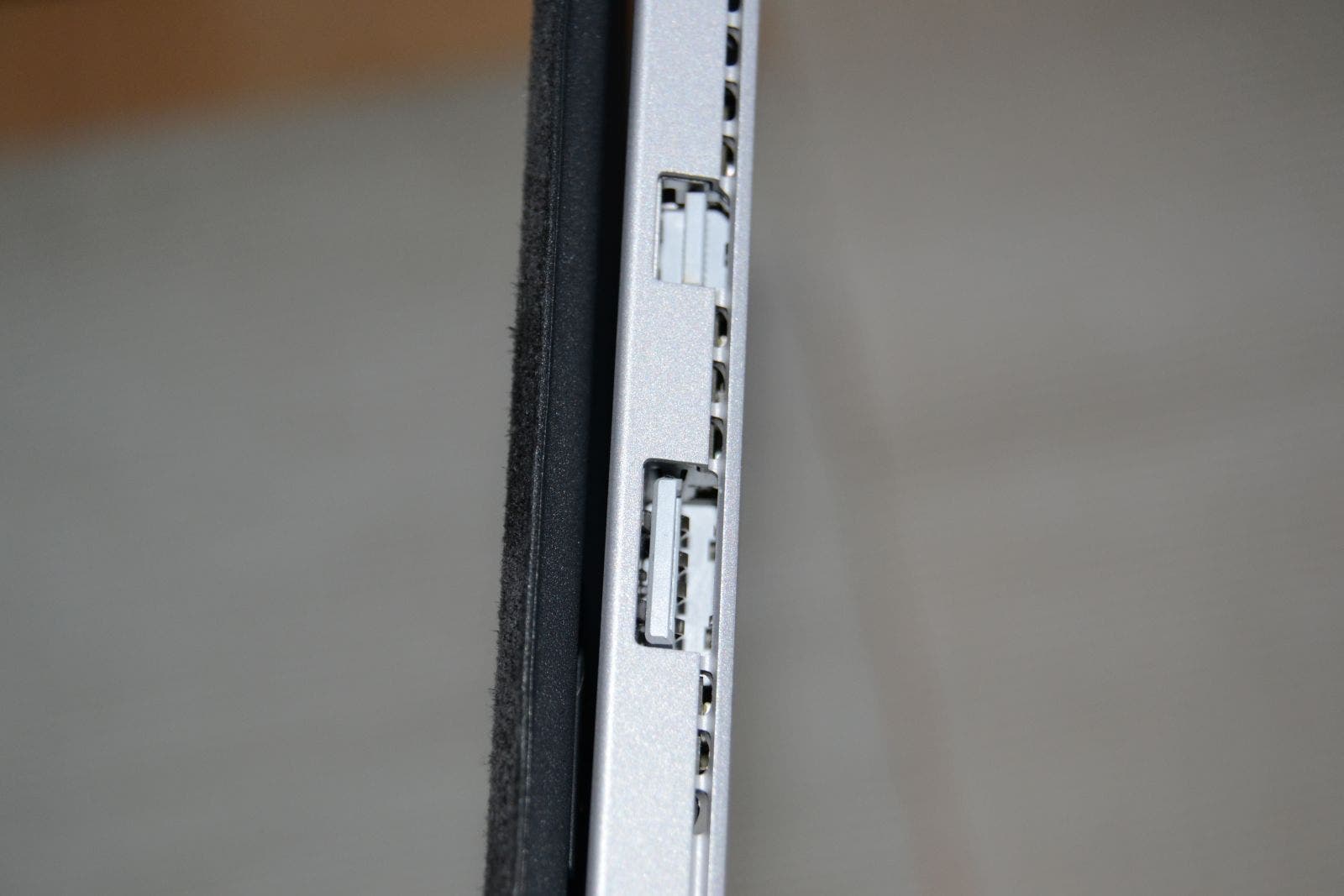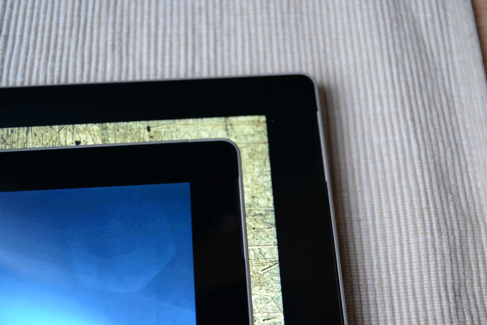 Die Anordnung der Anschlüsse hat sich jedoch ein klein wenig verändert. So auch bei den Hardwaretasten am Rand des Gehäuses. Die Lautstärkewippe sitzt nun nämlich nicht mehr seitlich am Tablet, sondern findet sich an der Oberseite des Gehäuses, neben dem Powerbutton, wieder. Dies hat den Vorteil, dass der Lautstärkeregelung, gerade bei abgewinkelten Headset-Steckern, (wortwörtlich) nun nichts mehr im Weg steht.