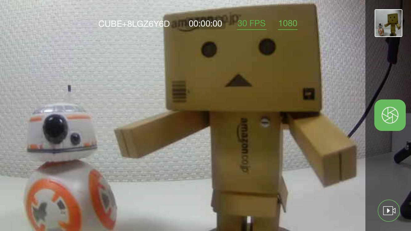 Seid ihr mit dem Cube verbunden, startet die App sofort in den Live-View-Modus. Auf der rechten Seite könnt ihr zwischen dem Video-Modus und dem Foto-Modus umschalten. Auch bekommt ihr die Möglichkeit, hier den Selbstauslöser zu starten bzw. ein Timelapse aufzunehmen.