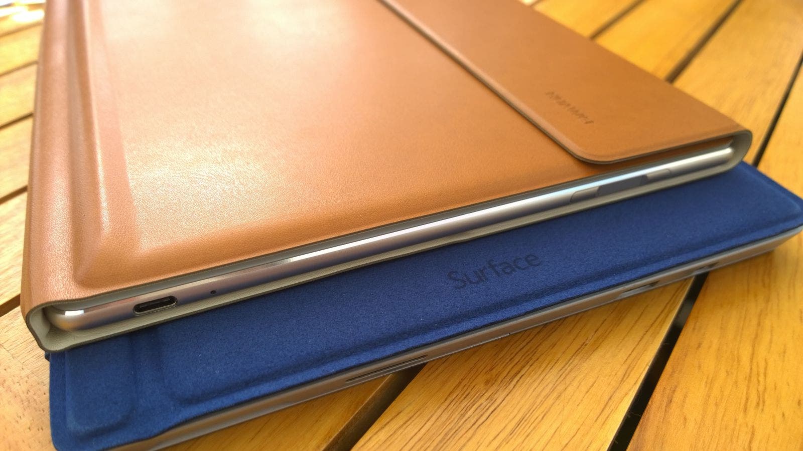 Über Geschmack lässt sich ja bekanntlich streiten. Mir gefällt das MateBook, besonders die Kombination von Cover und Tastatur in Leder. Die Haptik und die Verarbeitung des Leders machen einen sehr ordentlichen Eindruck, auch die Farben gefallen mir. Es bleibt ein wenig abzuwarten, wie stark das Leder abnutzt, hoffentlich hat Huawei hier nicht an der falschen Stelle gespart. Das Design des Surface Pro ist hingegen ganz anders. Das Magnesium Gehäuse hat diesen strengen Minimalismus, den man sonst allenfalls von Apple Produkten kennt. Dagegen versprüht das MateBook – in Kombination mit dem Leder und dem weißen Rahmen – fast schon so etwas wie Wärme.