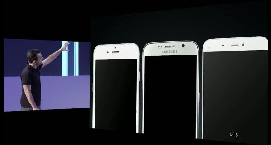 Apropos iPhone-Vergleich: Sowieso hat es Hugo Barra sich nicht nehmen lassen, bei der Präsentation sein Mi5 mit den Geräten der Konkurrenten Samsung und Apple zu vergleichen, um uns die Unterschiede zu verdeutlichen.Im ersten Bild seht ihr dabei auch, dass Xiaomi beim Mi5 den Platz auf der Front besser nutzt als die Mitbewerber: