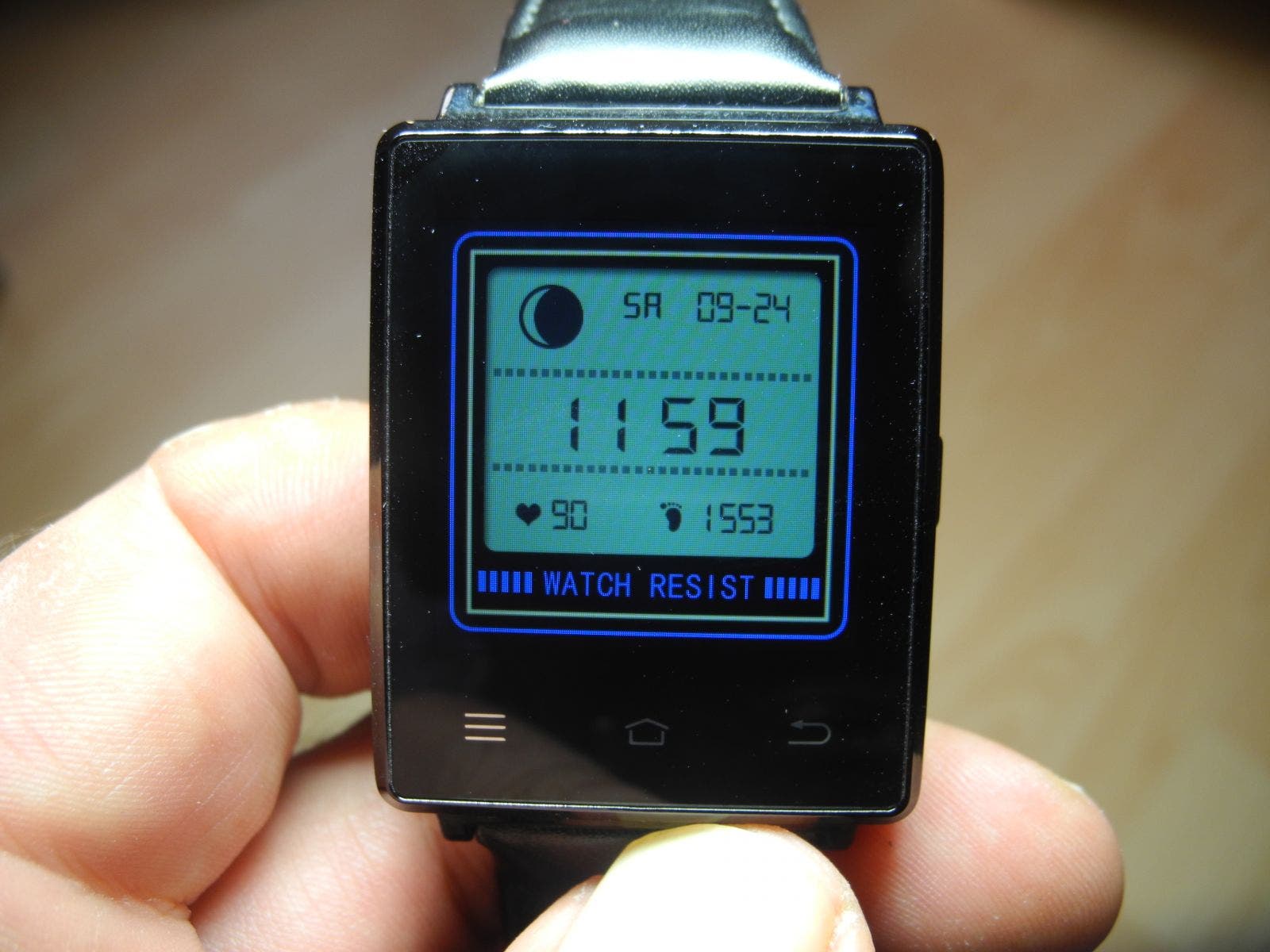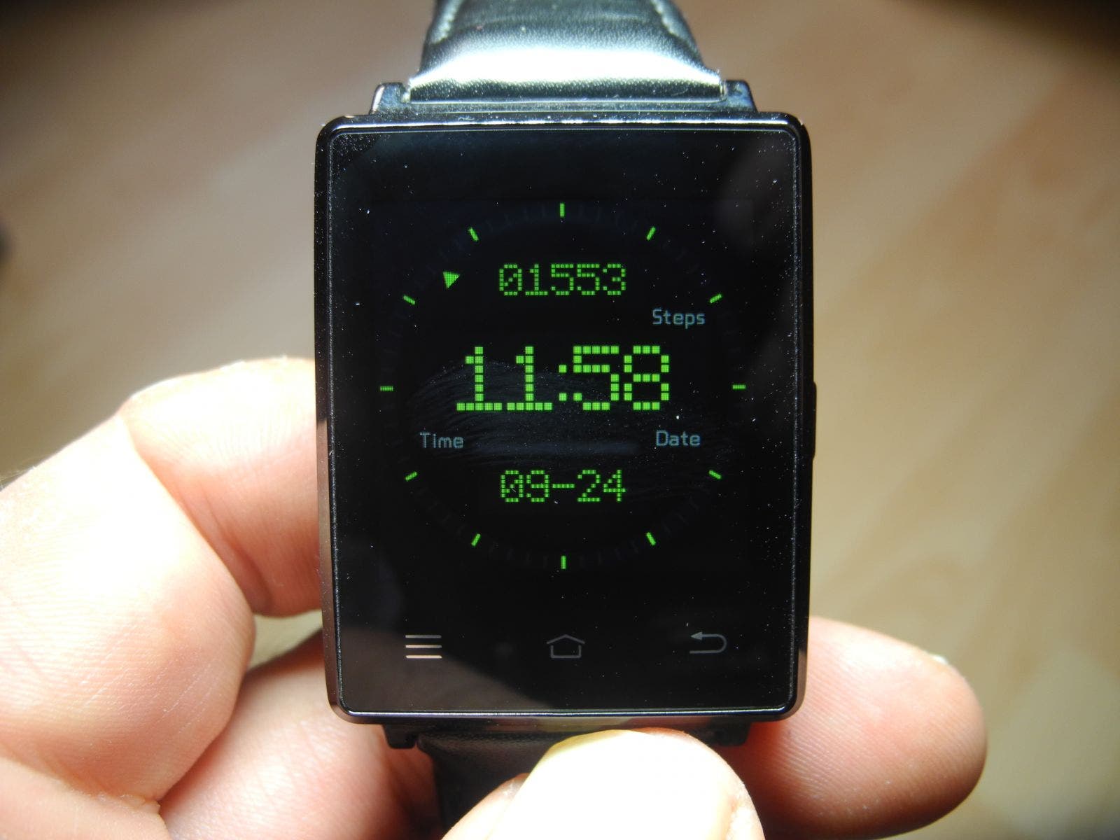 Die geringe Auflösung merkt man übrigens sehr stark. Insbesondere, wenn man Apps nativ auf der Smartwatch installiert. Die Schriften wirken pixelig und ausgefranzt, von Bildern, die man sich ohnehin nicht auf einem solch kleinen Display anschauen sollte, ganz zu schweigen. Die Farbdarstellung ist blass und unscharf. Lediglich die Watchfaces sehen ausreichend gut aus. Trotzdem zieht das Display eine ganze Menge Strom, was sich negativ auf die Akkulaufzeit auswirkt. Dieser hat übrigens 450 mAh und ist wechselbar, da er nur auf der Platine eingesteckt ist. Leider reicht das jedoch nicht aus, um die Uhr über den ganzen Tag zu bringen.