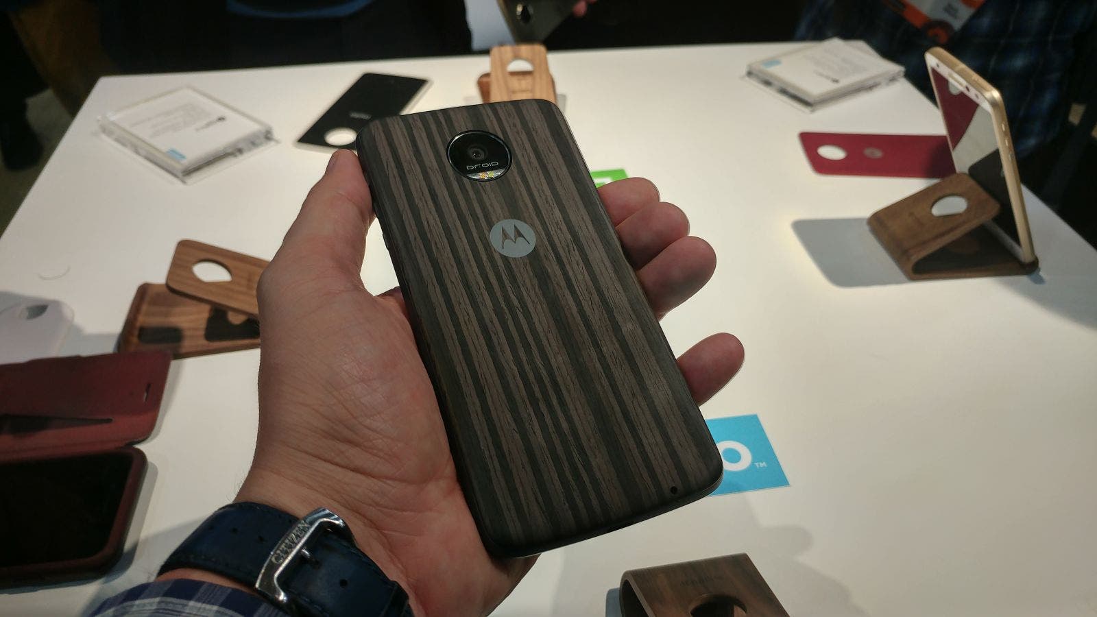 Zu den Moto Mods gab es bereits ausführliche Details. So soll das Audio-Pack von JBL stammen, zwei Lautsprecher mit 3 Watt und ein integriertes Akku-Pack mit 1100 mAh besitzen. Das separat erhältliche Akku-Mod besitzt eine Kapazität von 2200 mAh und ist in drei verschiedenen Style-Varianten erhältlich. Beim Projektor-Mod handelt es sich um einen Pico-Beamer, der mit 480p auflöst. Bei allen Mods soll ein umständliches Koppeln oder Konfigurieren entfallen, alles wird über die magnetische „Snap-Connection“ gelöst.