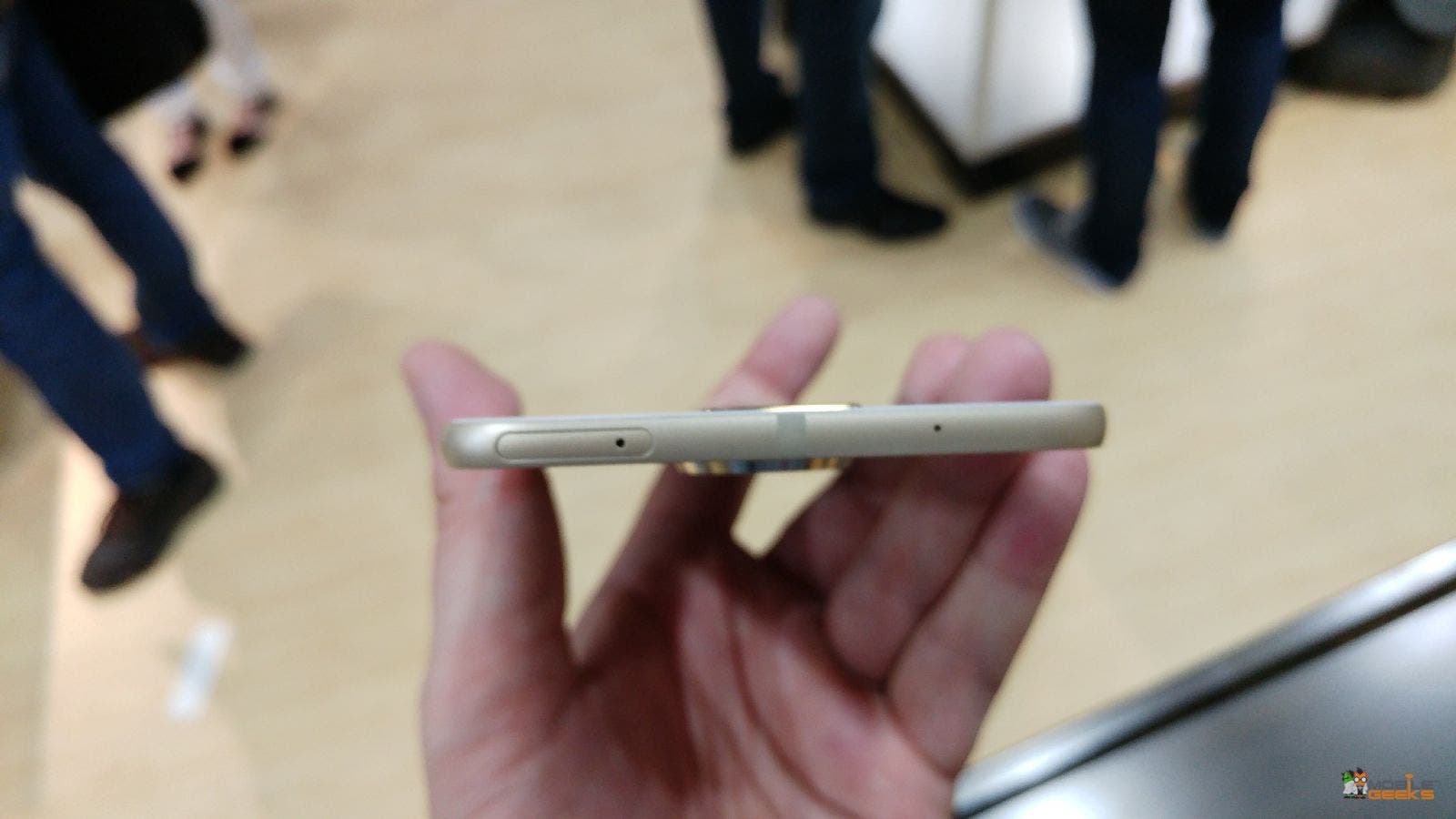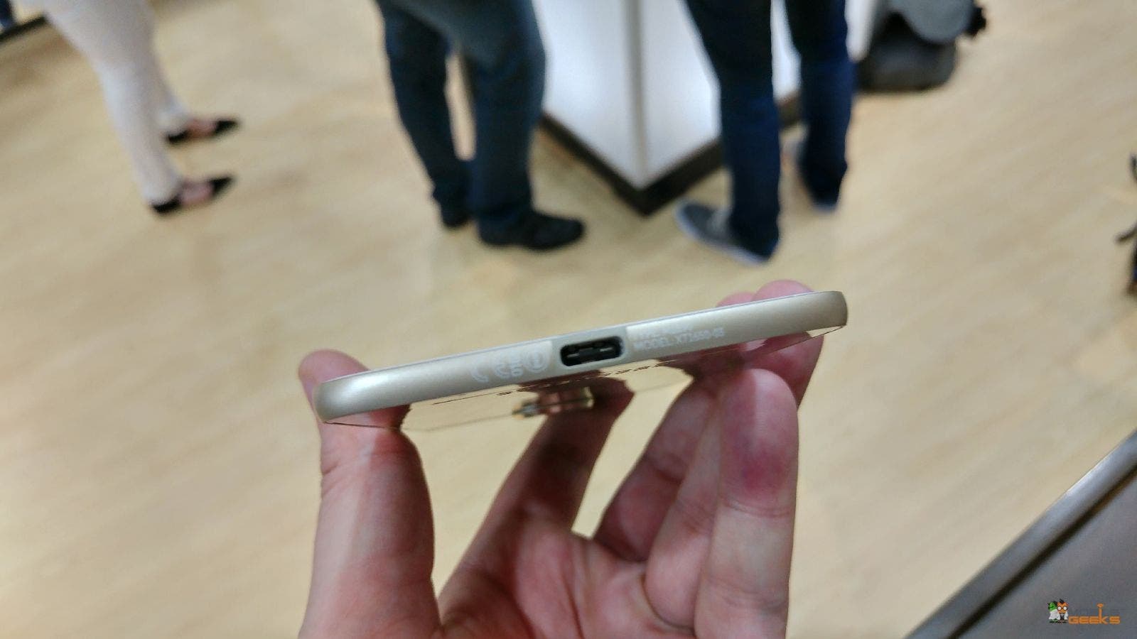 Schauen wir ums Gerät herum, haben wir oben die Schächte für SIM-Karte und microSD-Karte, an der rechten Seite Lautstärkeregelung und Power-Button, die linke Seite hat überhaupt nichts vorzuweisen. Unten schließlich sehen wir dann den USB Typ-C-Anschluss und wer genau aufgepasst hat, wird bemerkt haben, dass die Buchse für den Kopfhörer fehlt. Euer Headset schließt ihr ebenfalls über den USB Typ-C-Port an, ein entsprechender Adapter soll im Lieferumfang enthalten sein.