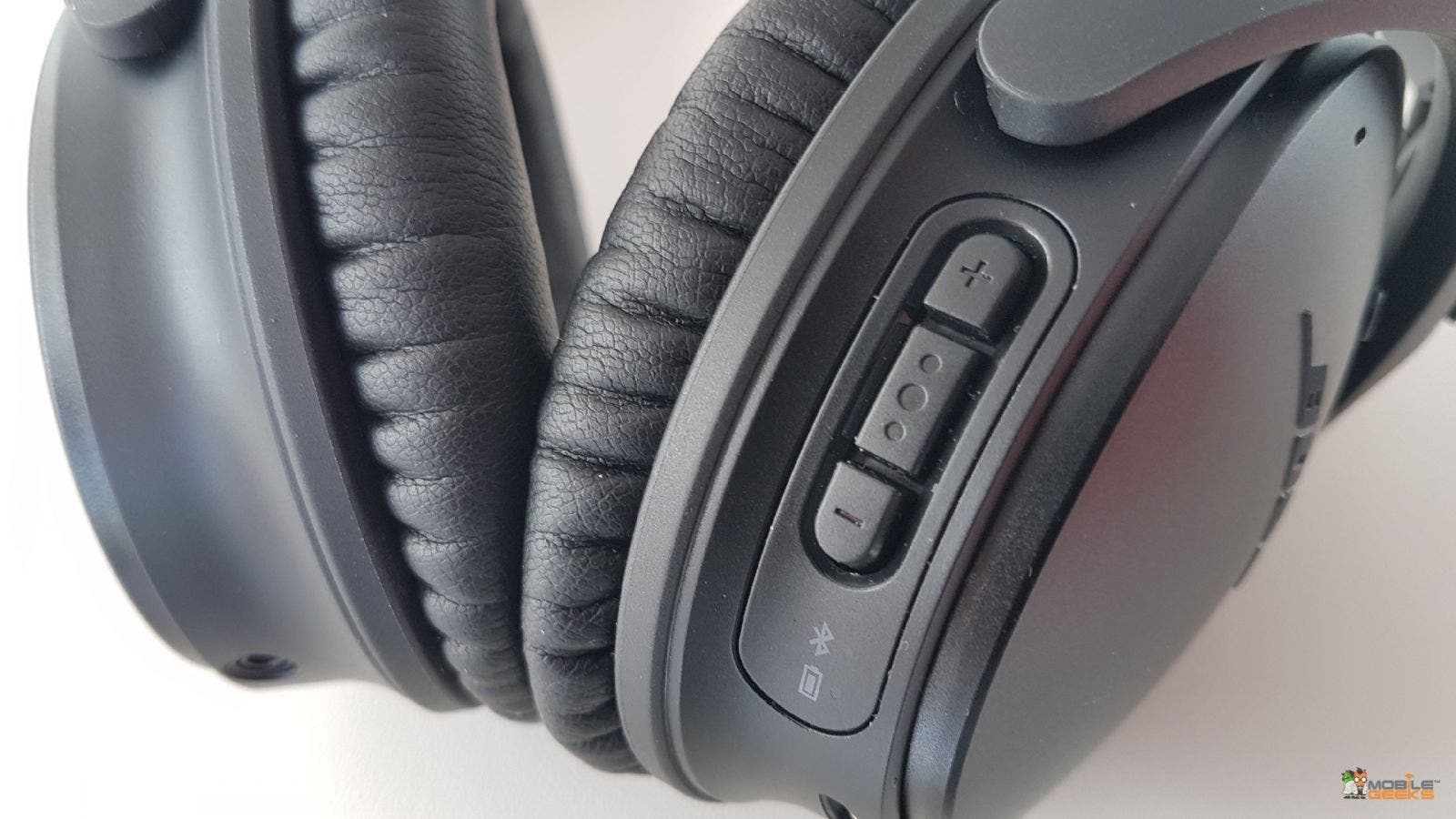 Die Verarbeitung ist wie immer erhaben. Das Leder der Ohrmuscheln ist extrem hautfreundlich und laesst den Traeger auch nach mehreren Stunden nicht an diesen Stellen nervend schwitzen. Dazu noch das Microsuide-Pad unter dem oberen Buegel. So sitzt der QC35 angenehm gepolstert auf der Schaedeldecke. Ich wuesste ehrlich gesagt nicht mehr, wie man dies noch verbessern koennte. Ob 1 oder 10 Stunden. Der QC35 sitzt sowas von perfekt und das over ear-Design passt auch ueber etwas groesser geratene „Lauscher“.