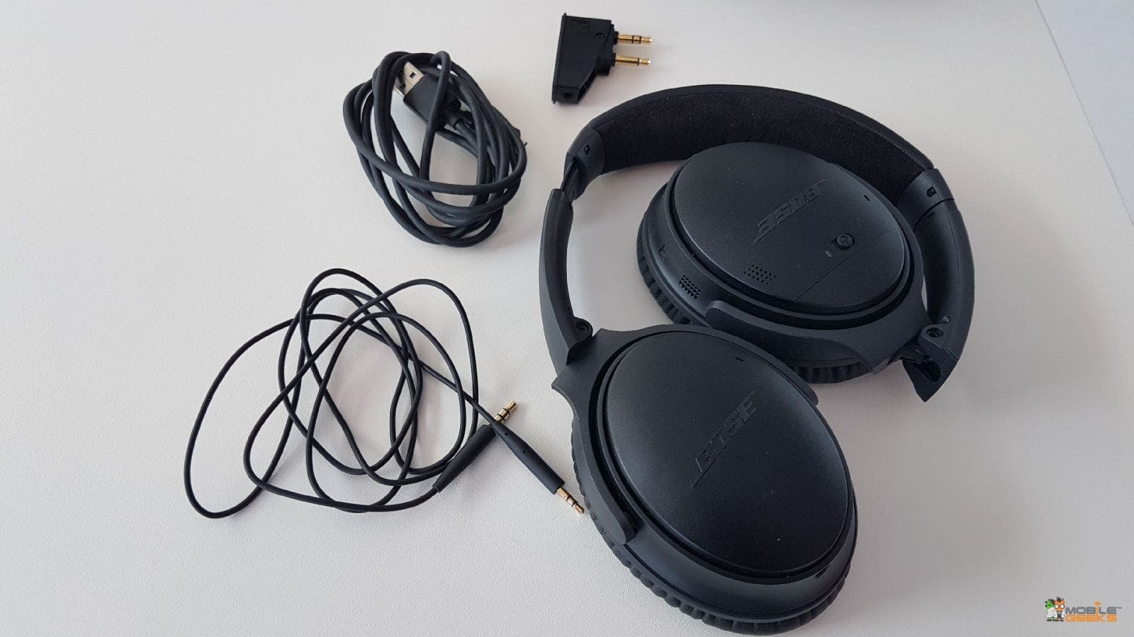 [mg_blockquote align=“left“]Wer das beste und kompletteste Noise Cancelling Headset sucht, der wird beim Bose QC35 fuendig und es lieben.[/mg_blockquote]Ein grossartiges Produkt (QC25) wurde perfektioniert. Ich kann es nicht anders umschreiben und weise schon einmal jede Voreingenommenheit weit von mir. Klar, Bose NC-Headsets sind seit nun 7 Jahren meine taeglichen Begleiter, aber ich habe auch genug Zeit mit den Wettbewerbern verbringen koennen. Keiner davon ist beim Noise Cancelling so gut aufgestellt wie Bose und dies war ja schliesslich mein erster Kaufgrund. Ich will Ruhe haben, wenn ich die Dinger aufsetze. Wenn ich mich dann dazu entscheide Musik zu hoeren oder einen Film zu schauen, dann liefert der QC35 auch hier beste Qualitaet, wenn es auch durchaus bessere Headsets fuer diesen Zweck gibt.