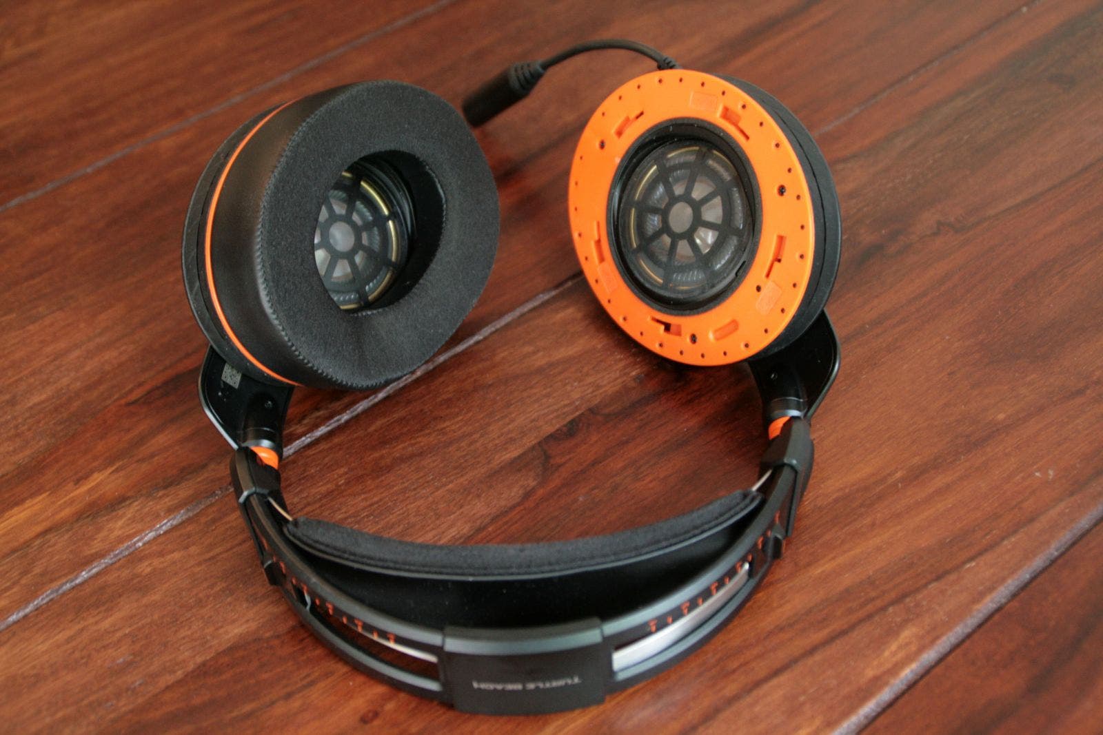 So drücken die rund 430 Gramm (mit Mikrophon) auch nach fünf Stunden Testzeit nicht auf die Ohren. Ein besonderes Problem sind Brillenträger, doch auch hierfür hat sich Turtle Beach beim Elite Pro etwas einfallen lassen: Per Drehmechanismus lässt sich das Polster abnehmen und via Lasche auf der Rückseite eine Einkerbung für Brillenbügel ziehen. Zumindest für durchschnittliche Köpfe liegen diese an der richtigen Stelle, für sehr kleine Nutzer, leider etwas zu hoch.