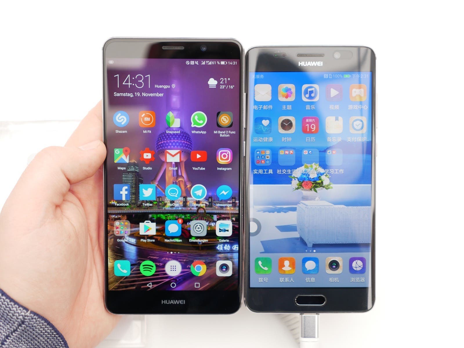 Hinzu kommt, dass das Mate 9 Pro auf ein AMOLED Panel setzt, das noch etwas weitere Blickwinkel bietet als das IPS-Panel des Huawei Mate 9. Die Farben sind ebenfalls etwas knalliger, wirken dafür aber etwas weniger natürlich. Von der Helligkeit gibt es kaum Unterschiede, beide sind auch bei hellen Umgebungen bestens abzulesen.