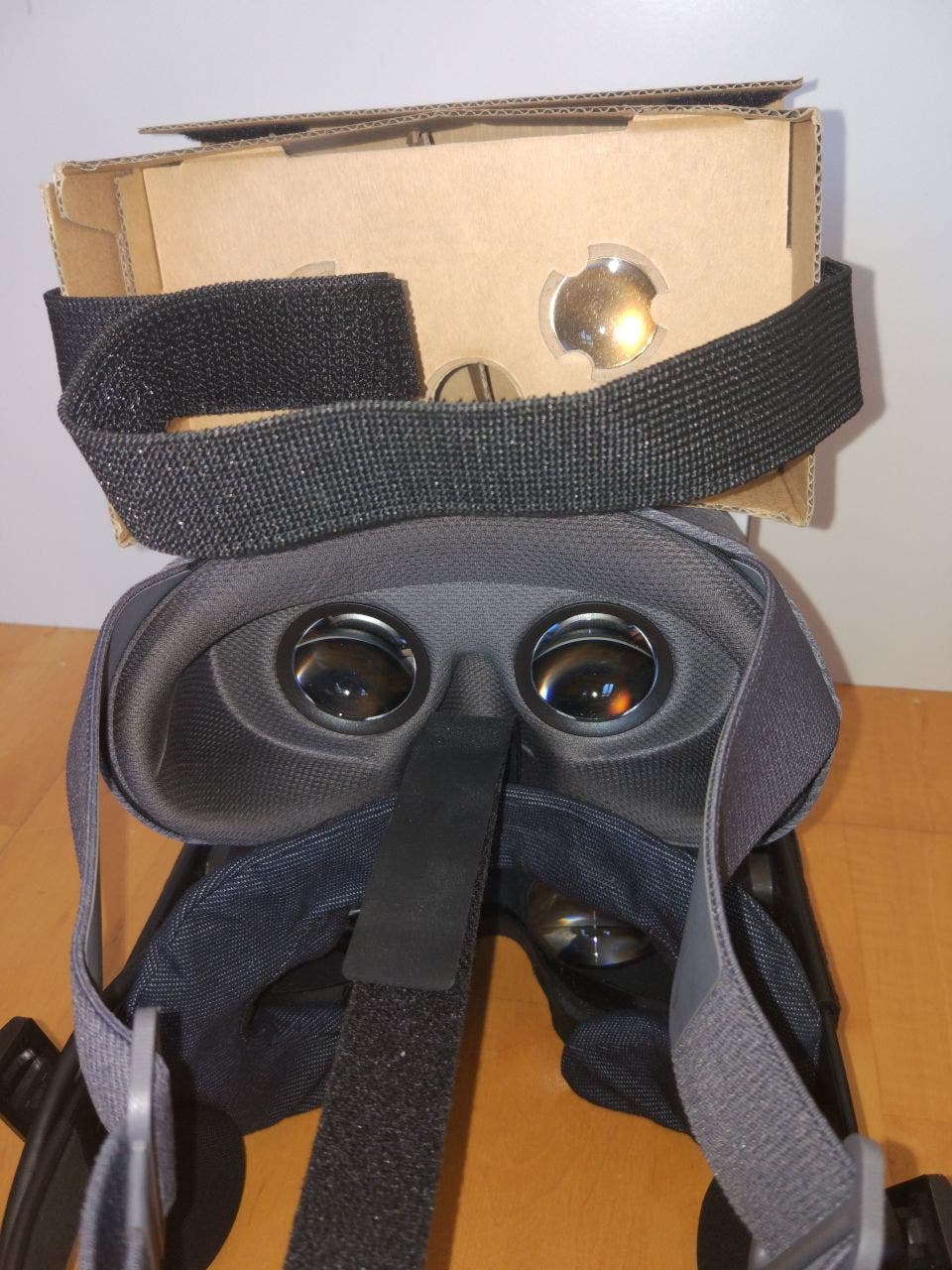 Aufgrund des geringen Gewichts konnte Google beim Headset auch auf einen weiteren Gurt über den Kopf verzichten, wie er bei der Rift oder Vive benötigt wird: Selbst bei schnellen Kopfbewegungen rutscht die VR-Brille nicht nach unten. Ein kleiner Nachteil ist, dass dadurch das verbleibende Kopfband recht stramm gespannt werden muss: Manche Personen empfinden diesen Druck als störend. Wer das Headset keine Stunde am Stück nutzt, sollte aber eigentlich keine Probleme bekommen.