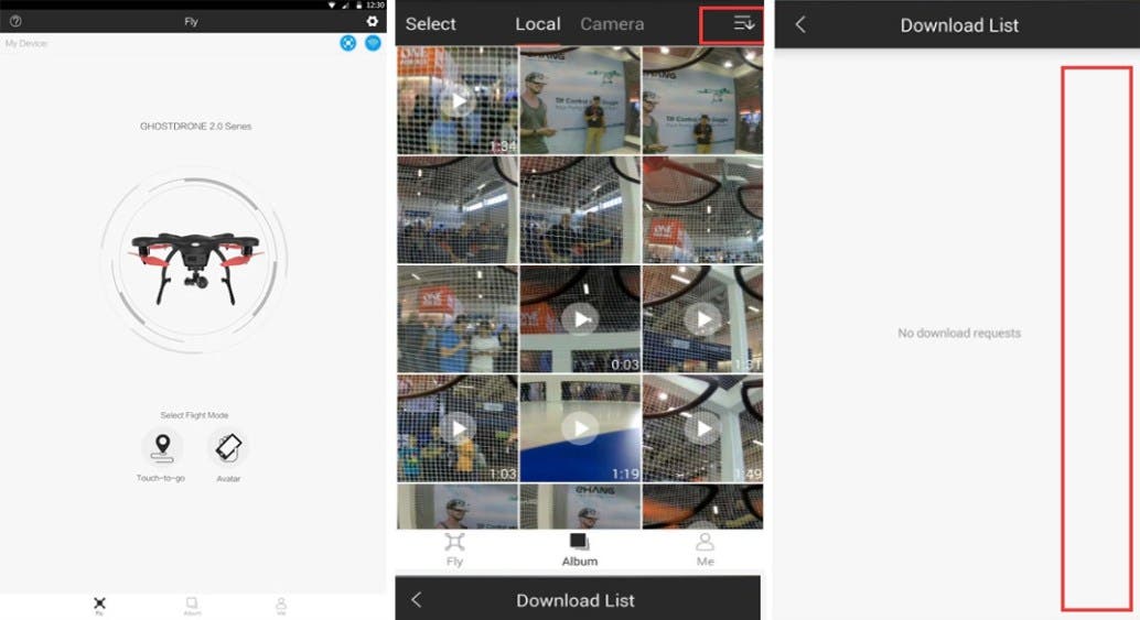 Sowohl Videos als auch Fotos werden in der Drohne auf einer MicroSD-Karte (64GB-Karte wird mitgeliefert) gespeichert. Wenn die Drohne nicht verwendet wird, lassen sie sich per WLAN abrufen. Dadurch lässt sich zwar einfach auf die Fotos und Videos zugreifen, aber das bedeutet auch, dass man sie nicht mitten im Flug ansehen kann, da man stets mit dem WLAN-Netz verbunden bleiben muss. Um auf die Videos mit voller Auflösung zugreifen zu können, muss man außerdem die SD-Karte mit dem Computer verbinden, da die App nur 240p-Varianten der Videos bietet.