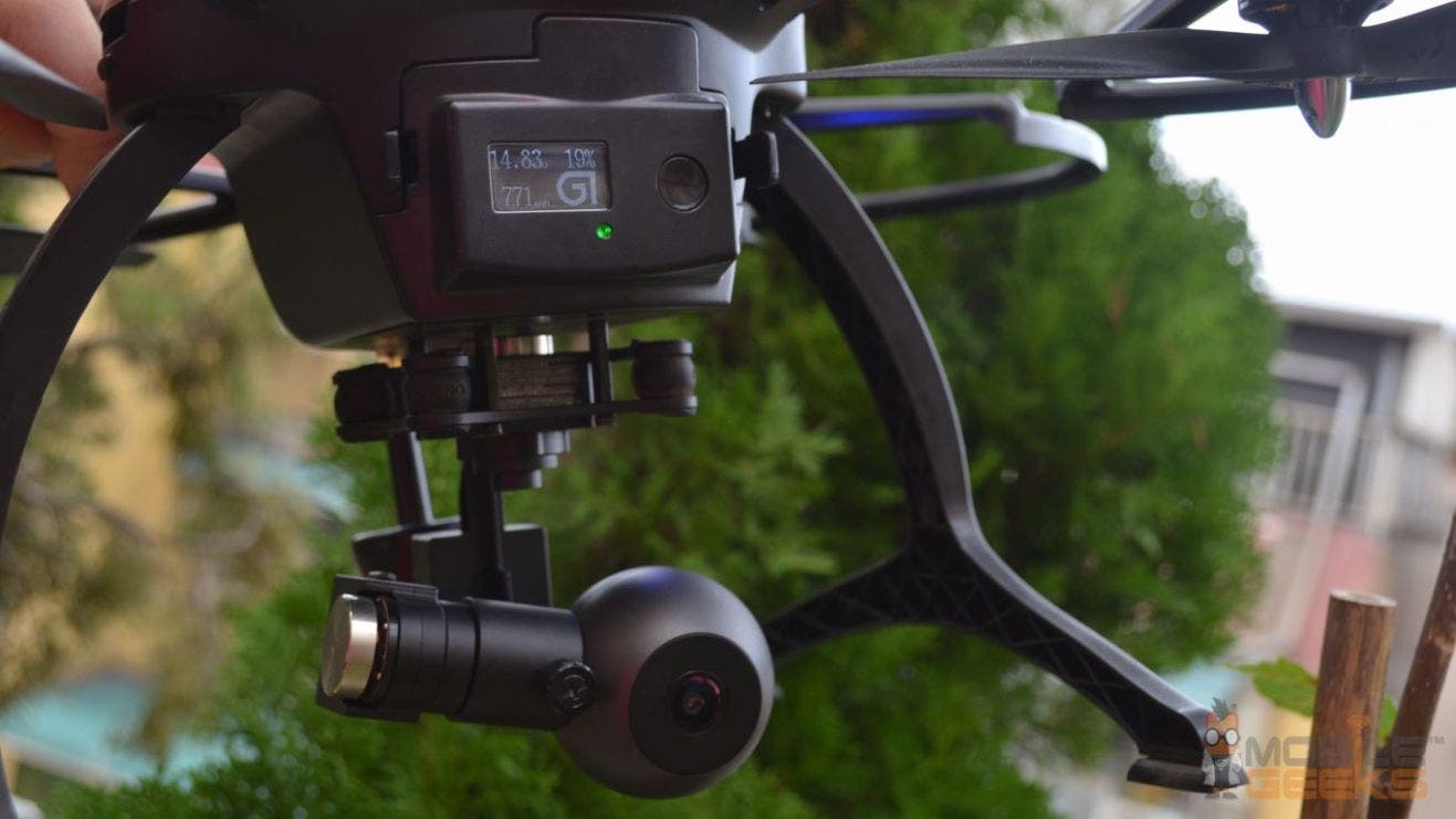 Die Drohne ist mit einem Gewicht von 1150g relativ leicht, wodurch sie einfach zu transportieren ist. Sie lässt sich also perfekt an verschiedene Orte und auf Entdeckungsreise mitnehmen. Ein Kritikpunkt am Design der Drohne sind jedoch die Füße, die uns ein wenig zu lang, zu dünn und nicht robust genug erscheinen. Sie sind nicht flexibel genug, um einem Absturz standzuhalten und ich glaube nicht, dass sie mehr als eine unsanfte Landung überleben würden.