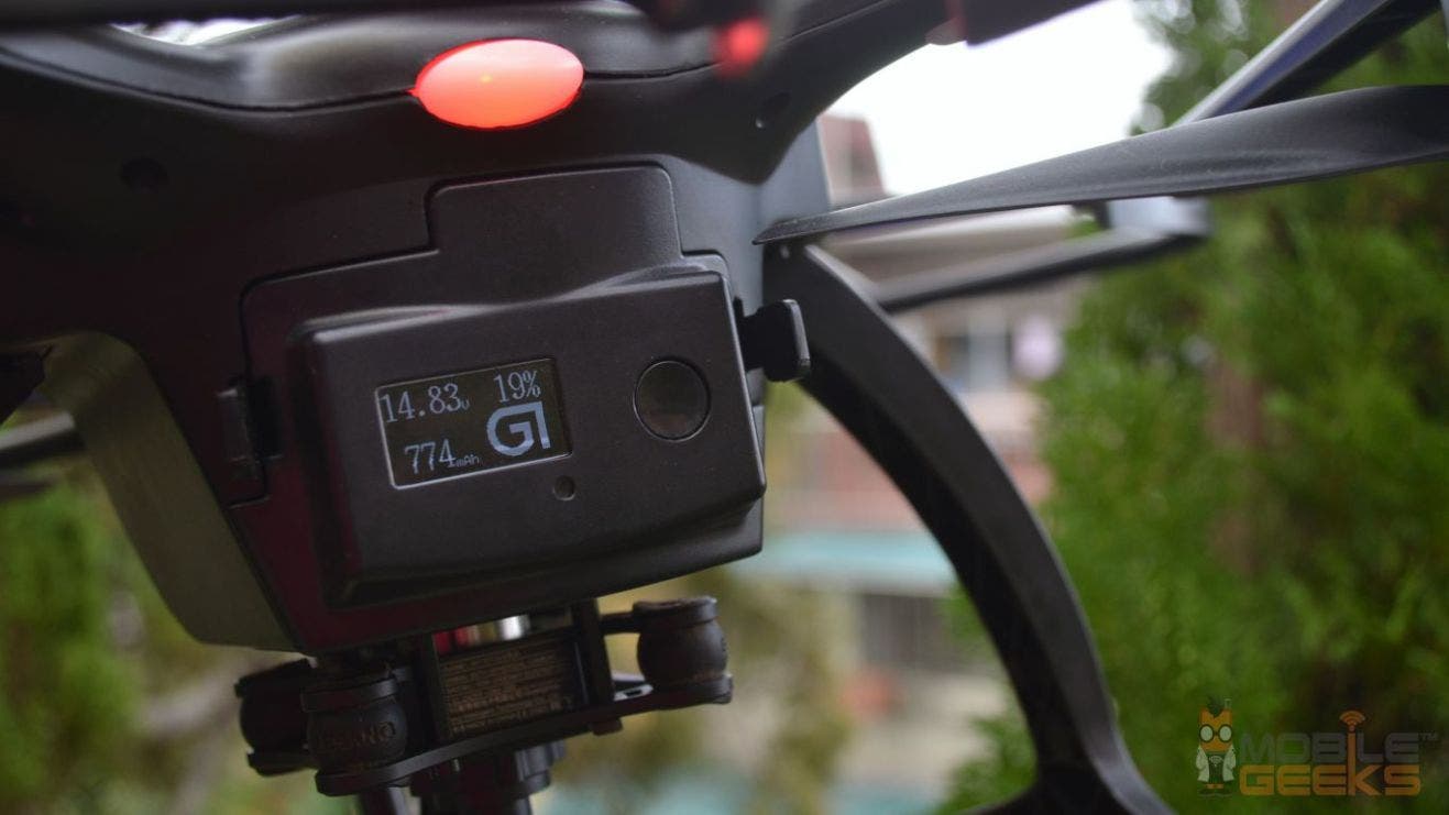 Was die Akkulaufzeit angeht, reicht eine Akkuladung ungefähr 17-20 Minuten lang, je nachdem wie schnell man die Drohne fliegt und wie das Wetter ist – wenn die Drohne ständig gegen den Wind ankämpfen muss, entleert sich der Akku wesentlich schneller. Keine Sorge, sollte der Akku mitten im Flug leer gehen, wird die Drohne mithilfe des eingebauten GPS automatisch am Startort landen. Bei einem unserer Testflüge haben wir das versehentlich ausprobiert und es hat tatsächlich funktioniert. Bei diesem Testflug sank nämlich der Akkustand sehr schnell von 12% auf 2%.