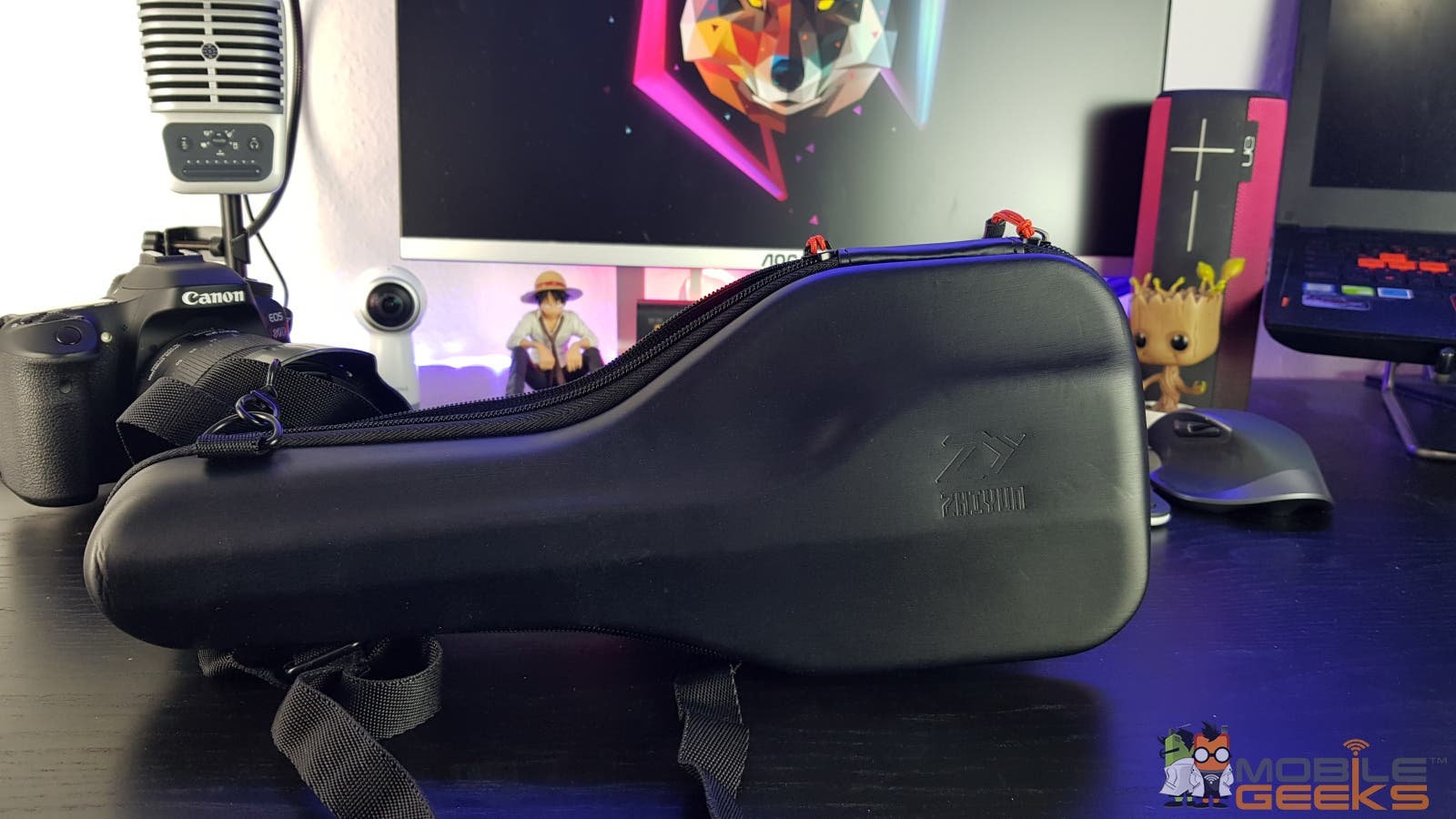 Im Lieferumfang ist neben einem microUSB-Kabel auch eine robuster kleiner Koffer mit Gürtel, die an ein einen kleinen Ukulele-Koffer erinnert und gut gepolstert ist.