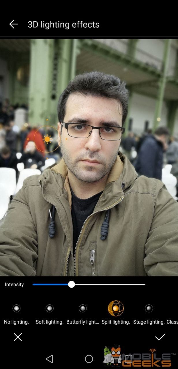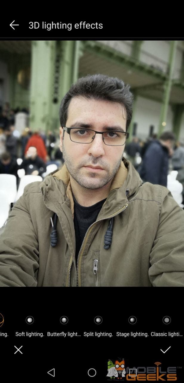 Interessanter ist dafür die Stage-Lighting-Funktion. Diese funktioniert ähnlich wie beim iPhone, aber hier kann man die Belichtung und dessen Position und Stärke selbst einstellen. Insgesamt funktioniert es relativ gut. Auch bei unebenen Hintergründen.