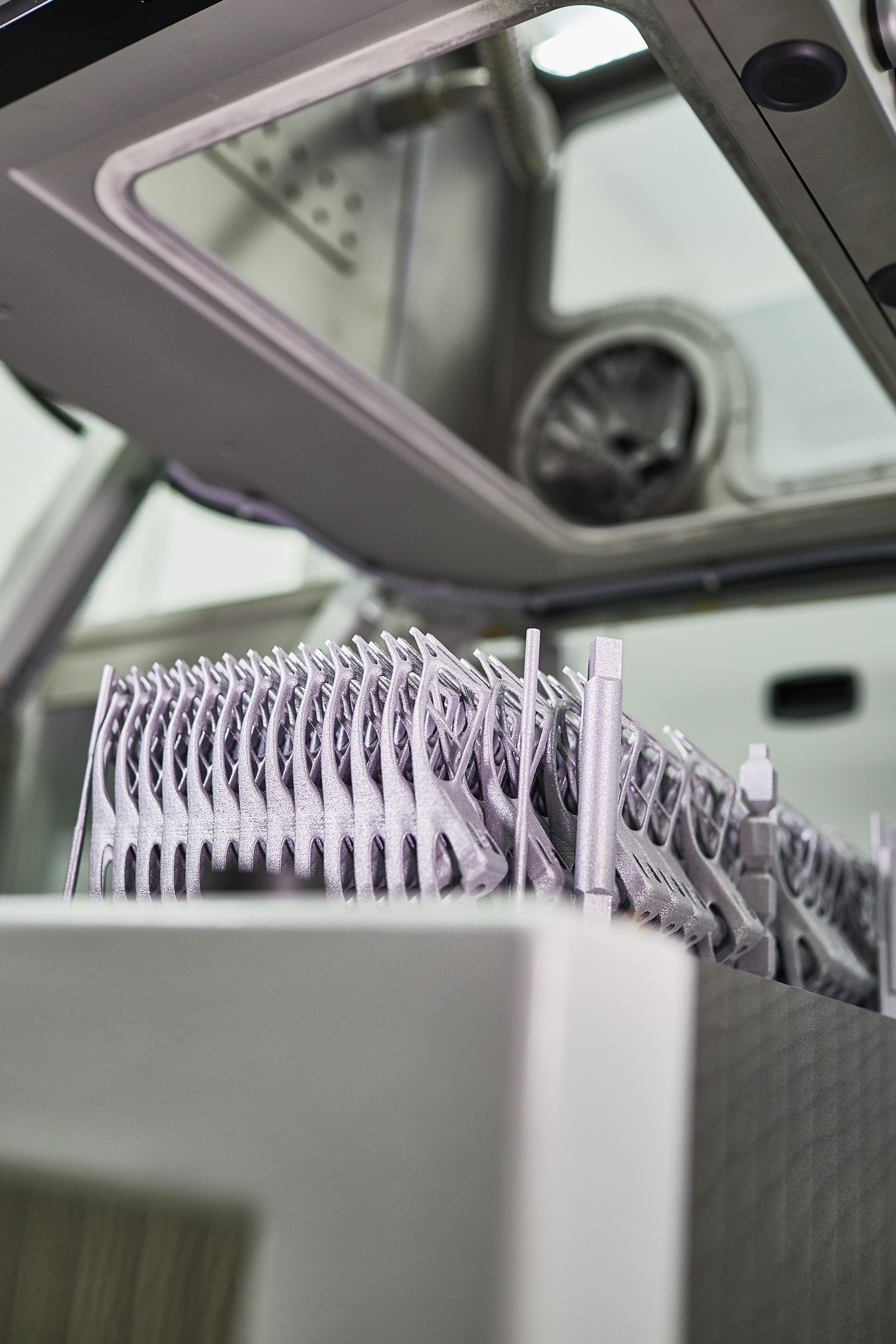 Aber als ob das noch nicht Weltneuheit genug wäre, ist der BMW i8 Roadster außerdem das weltweit erste Serien-Fahrzeug, in welchem Bauteile verbaut werden, die aus dem 3D-Drucker kommen. Das Bauteil, welches auch Teil der Dachmechanik war, sollte erst aus Kunststoff gefertigt werden, es hat sich aber herausgestellt, dass dies auf lange Dauer nicht fest genug wäre. Also hat man begonnen, das Stück als Aluminium-Teil aus dem 3D-Drucker zu fertigen. Der Vorteil ist, dass man so eine geometrische Form wählen konnte, welche topologisch optimiert ist und sich nicht in einem herkömmlichen Gießverfahren herstellen ließe.