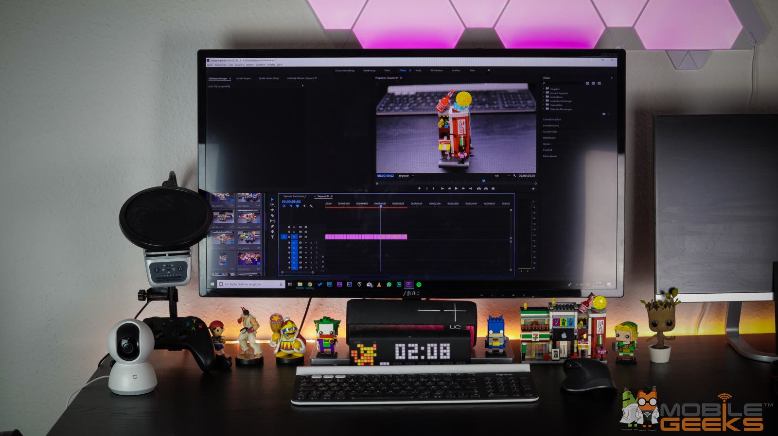 Das Display selbst hat eine Bildschirmdiagonale von 31,5 Zoll und ist damit so groß oder sogar leicht größer als viele Fernseher in vielen kleineren Haushalten. Dementsprechend muss man natürlich auch genug Platz auf dem Tisch haben. Diese Größe bringt aber den Vorteil, dass es zum einen die Arbeit erleichtert, da man viel mehr Fläche hat und alles besser lesbar ist. Damit entlastet es die Augen auch etwas mehr und ich habe nicht das Gefühl unbedingt einen zweiten Monitor zu benötigen, da das Display auch mit geteiltem Display durch mehrere Fenster groß genug wirkt. Das Spielen ist natürlich auch viel angenehmer und es macht deutlich mehr Spaß. Ein kleiner Nebeneffekt, bzw. Vorteil den ein so großer Bildshirm mit sich bringt ist auch, dass man weiter davon entfernt sitzen kann.