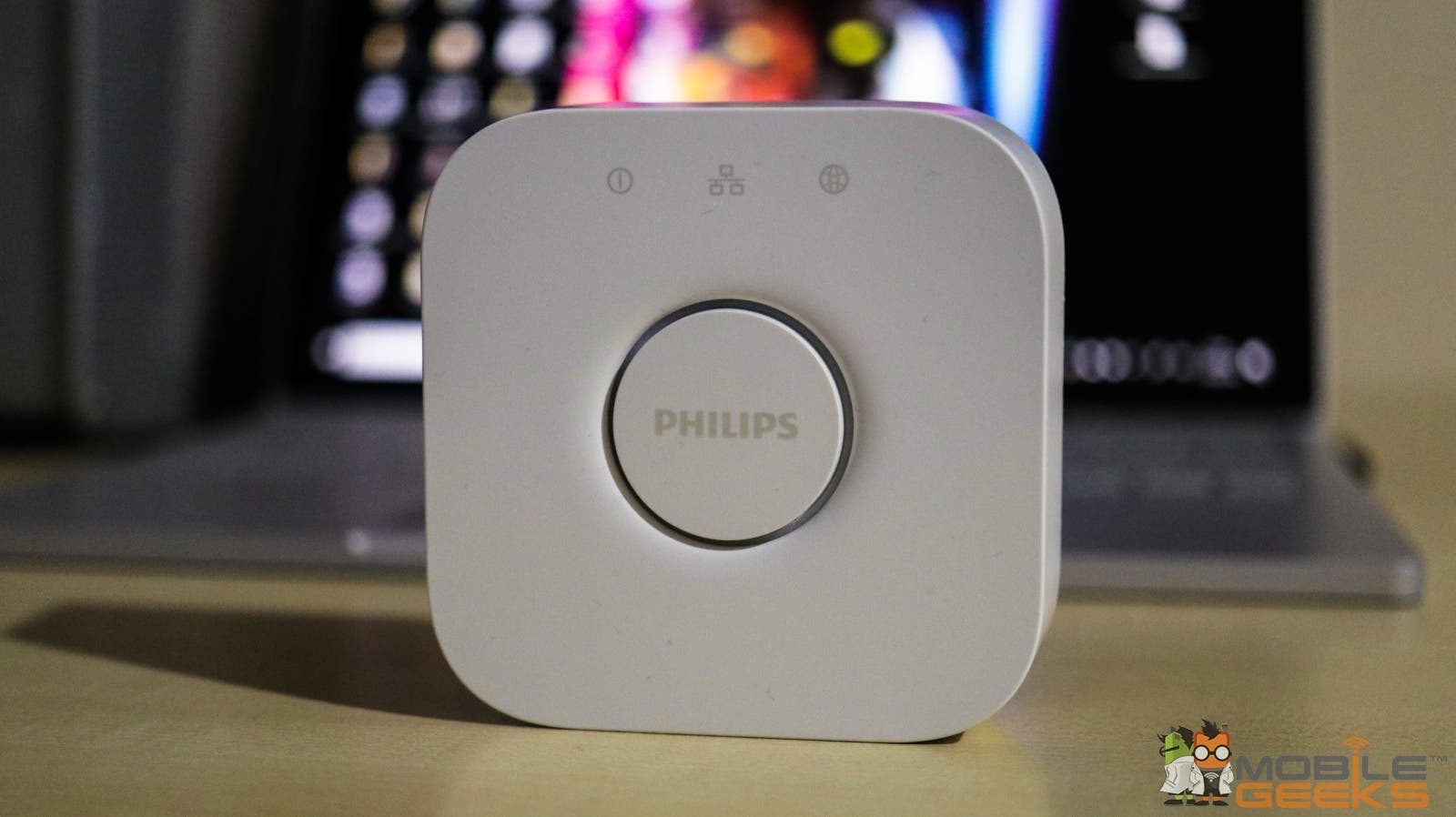 Wie bereits erwähnt ist dieses Bundle in Kooperation mit Philips Hue entstanden, da die Anlage sich mit Philips Hue verknüpfen lässt um die Funkionalität zu erweitern. In der Verpackung ist ein Gateway und zwei Glühbirnen (RGB, 806 Lumen), also eine weniger als in einem normalen Philips Hue Starter-Set. Was Philips Hue ist, sollte man mittlerweile wissen: Smarte Lampen, die sich per Smartphone, Sprachsteuerung etc. steuern lassen. Man kann sie ein und ausschalten, Farben wechseln, Helligkeit regeln, Szenen und pulsierendes Licht einstellen, Timer festlegen und mehr.