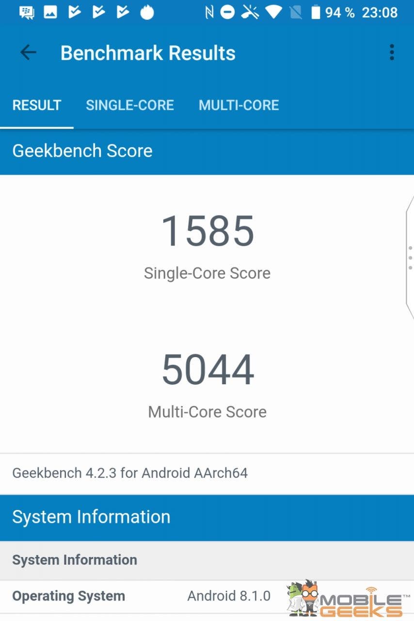 | Geekbench Single-Core / Multi-Core | 1585 / 5044 |