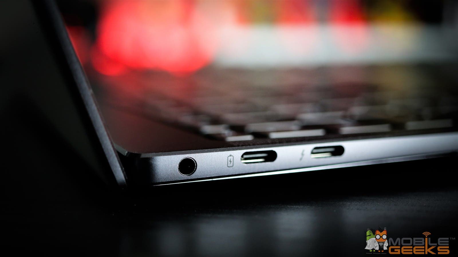 - Anschlüsse: 1x 3,5 mm Klinkenanschluss, 2x USB-C (1 x Thunderbolt), 1x USB-A (USB-3.0)