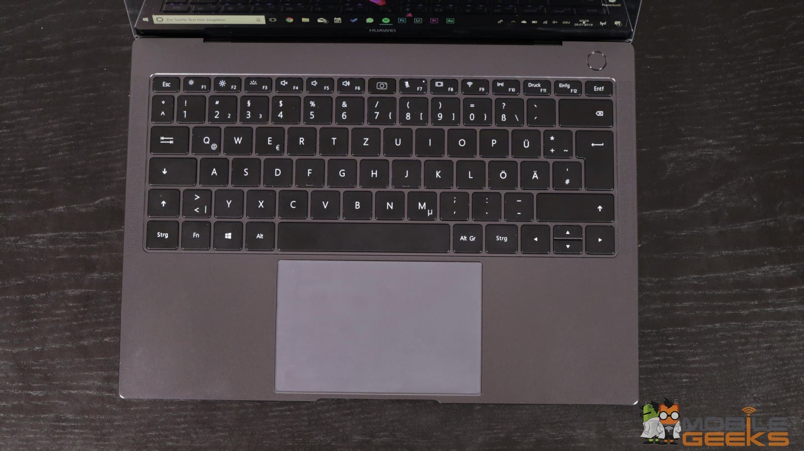 Die Tastatur des Huawei Matebook X Pro fühlt sich sehr gut an und das Tippen macht Spaß. Es handelt sich dabei um Chiclet-Tasten aus Kunststoff mit guten Hub, weshalb man sich nicht wirklich daran gewöhnen muss, weil sich die Tasten wie Tasten anfühlen und nicht wie Pappe. Ich sollte aber dazu noch erwähnen, dass ich allgemein, also egal ob zuhause, auf der Arbeit oder unterwegs generell flachere Tastaturen bevorzuge. Das Tippen ist in der Regel sehr leise, sodass man in der Bibliothek niemanden stören sollte. Die Flexibilität der Tastatur ist genau richtig, also nicht zu flexibel, aber auch nicht zu robust. Schön ist auch, dass die Tastatur Spritzwassergeschützt ist.