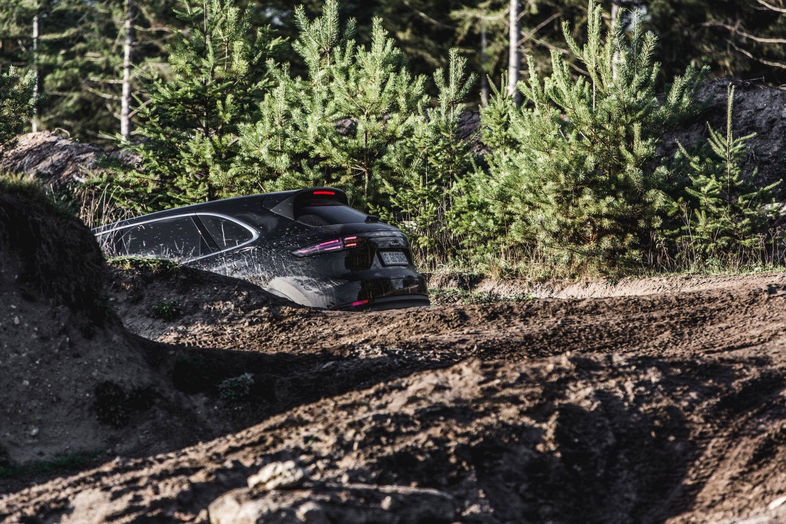 Hier hat auch sicherlich ein wenig geholfen, anderen Geländewagen zuzusehen. Da, wo nur die Hardcore-Geländewagen, die selbst bei kalten Wetter ohne Dach unterwegs sind und gefühlt einen halben Meter Bodenfreiheit haben, entlang fahren, macht man vielleicht besser einen Bogen rum. Die Routen, wo man eher normale Geländewagen lang fahren sieht, sind mit dem Porsche auch bezwingbar.