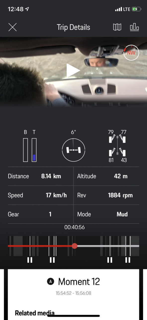 Anhand der Telemetrie erkennt die Porsche Offroad Precision App auch Highlights in eurer Fahrt. Das heißt, wenn ihr gerade ein besonders schweres Hindernis überwunden habt, setzt die App automatisch einen Marker, damit ihr diesen später auch wiederfindet. Den bei mehreren Stunden im Offroad Park ist natürlich klar, dass nicht mehr jede Pfütze ein Highlight ist. Ihr könnt natürlich auch jederzeit selbst Highlight-Punkte setzen.