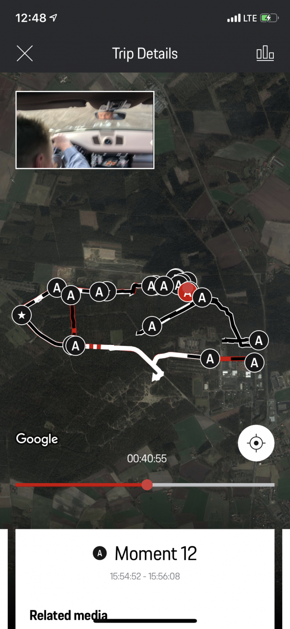 Während ich also durch den Park fahre, zeichnet das Smartphone die ganze Zeit ein Video auf. Was durchaus praktisch ist, wenn man sich verfahren hat. Außerdem ist es auch konstant per WLAN mit dem Fahrzeug verbunden und bekommt Telemetrie-Daten gesendet.