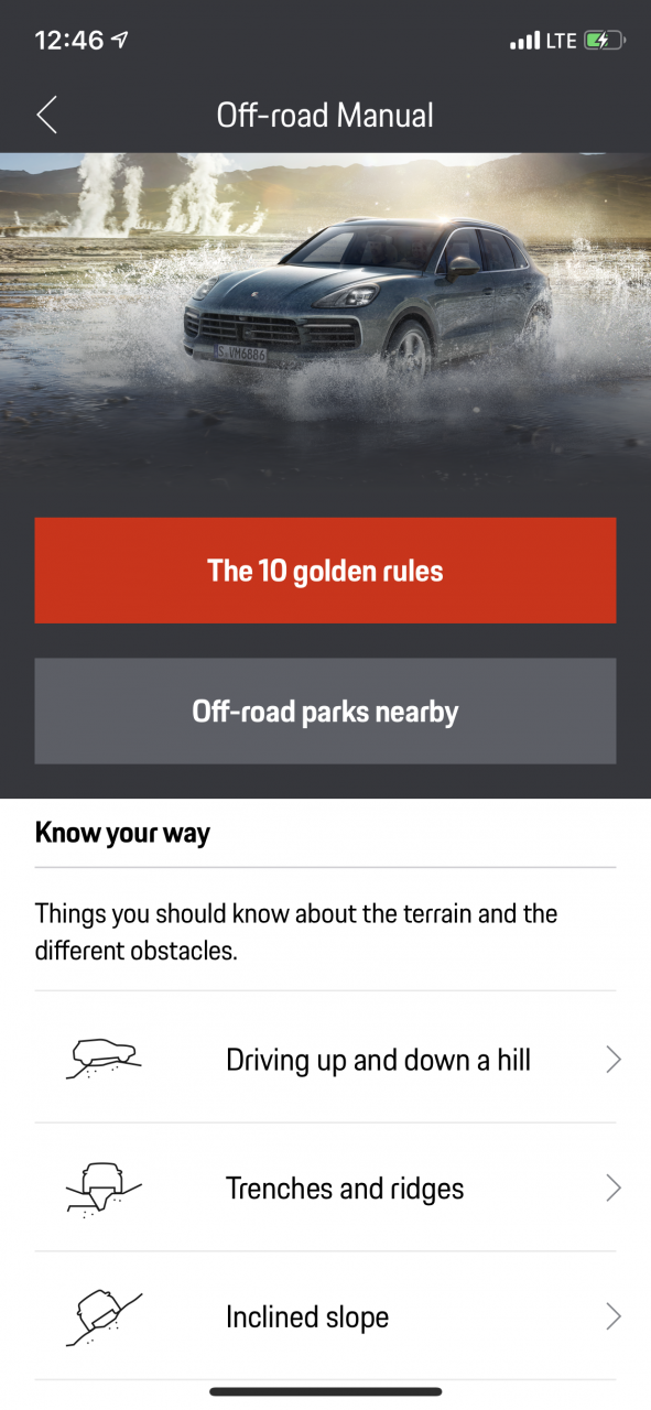Ich habe mir gedacht: Wenn Porsche eine App mit solchen Funktionalitäten und so viel Informationen entwickelt, dann wollen sie auch, dass der Cayenne im Gelände gefahren wird.