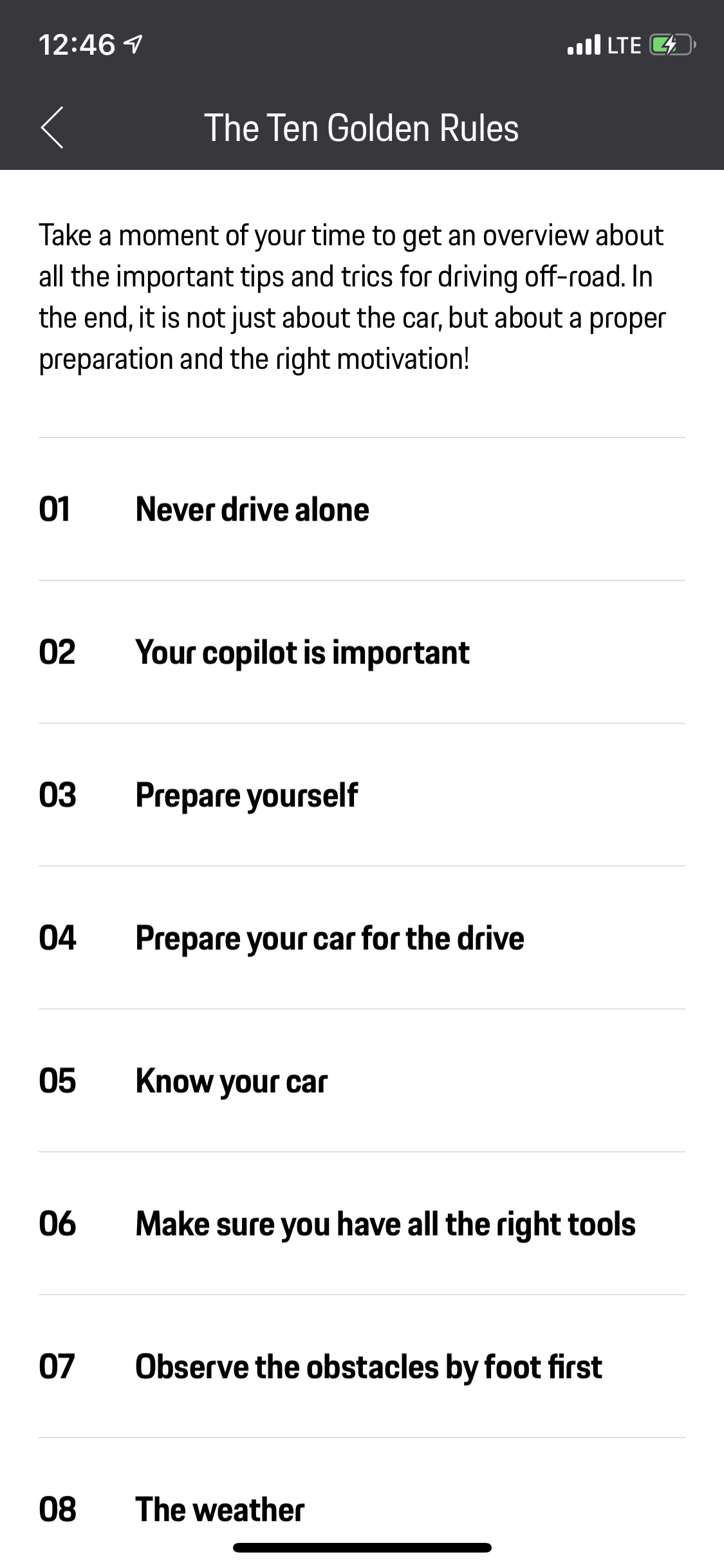 - Die App gibt einen breiten Überblick über das Offroad-Fahren und die nötigen Techniken