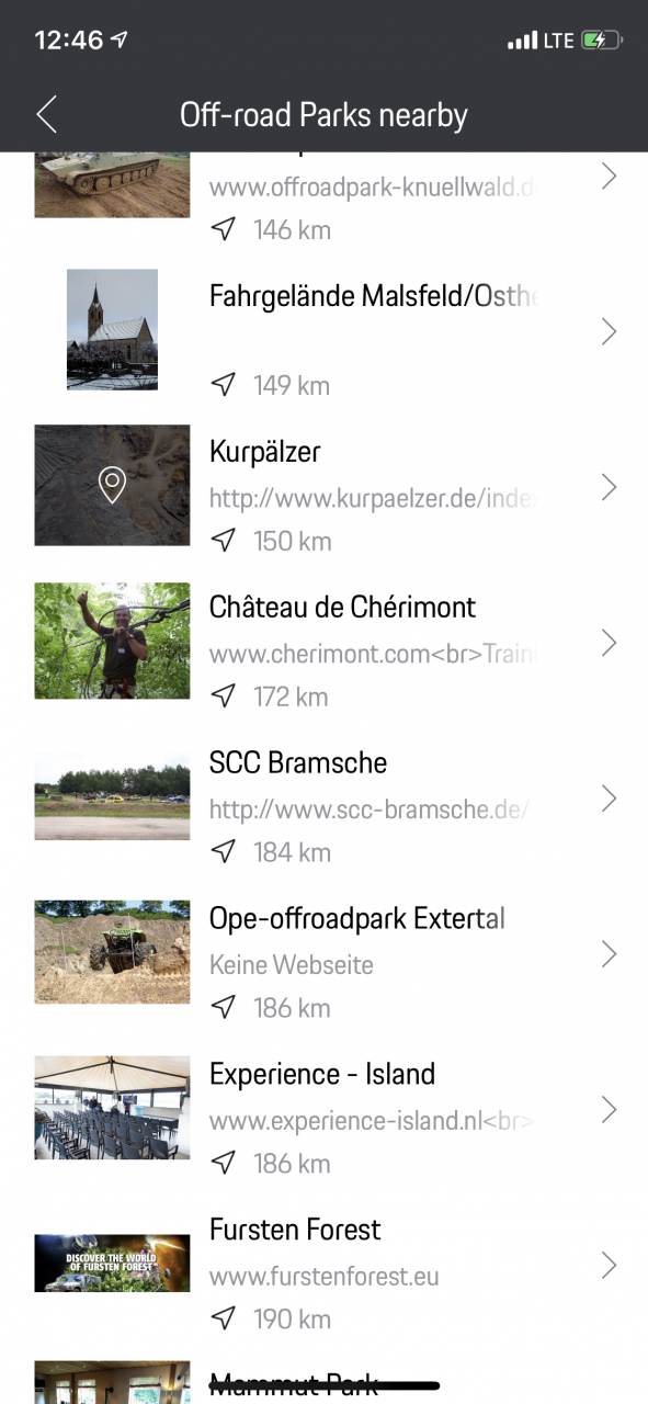 - Die App zeigt einem Offroad Parks, die in der Nähe liegen